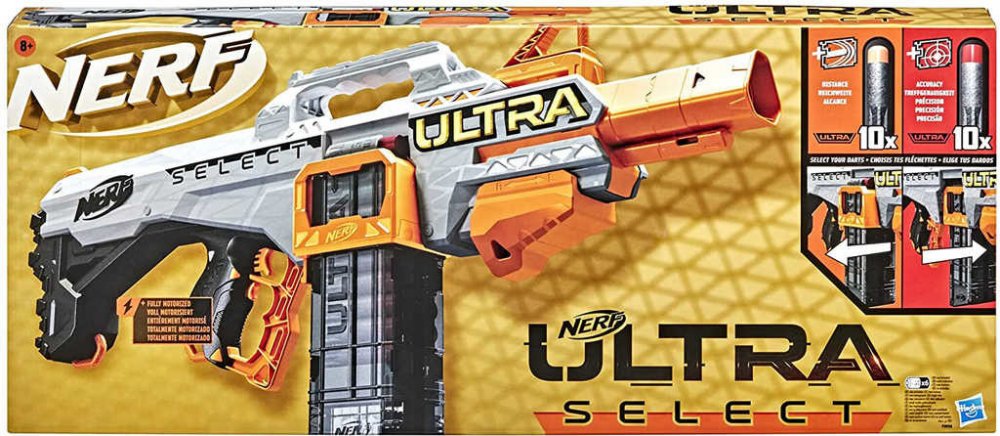přesnost. Ultra select je prvním plně automatickým ultra blástrem! Dodává se s 10 novými šipkami Accustrike Ultra a 10 Ultra šipkami pro střelbu na velkou vzdálenost.
