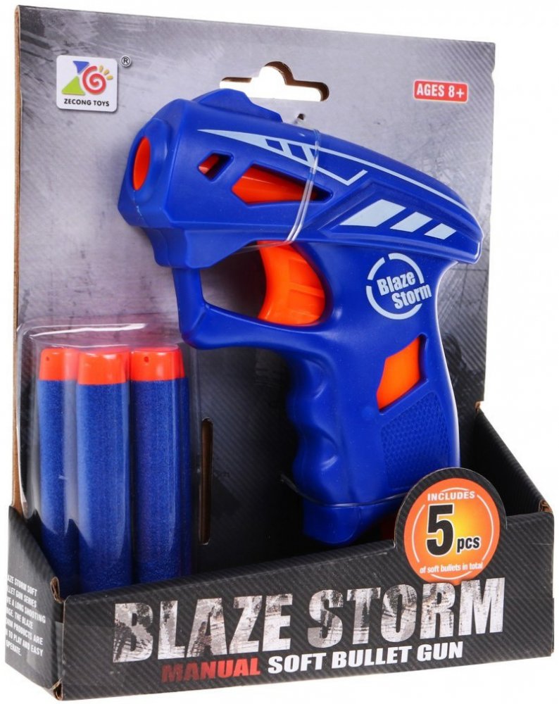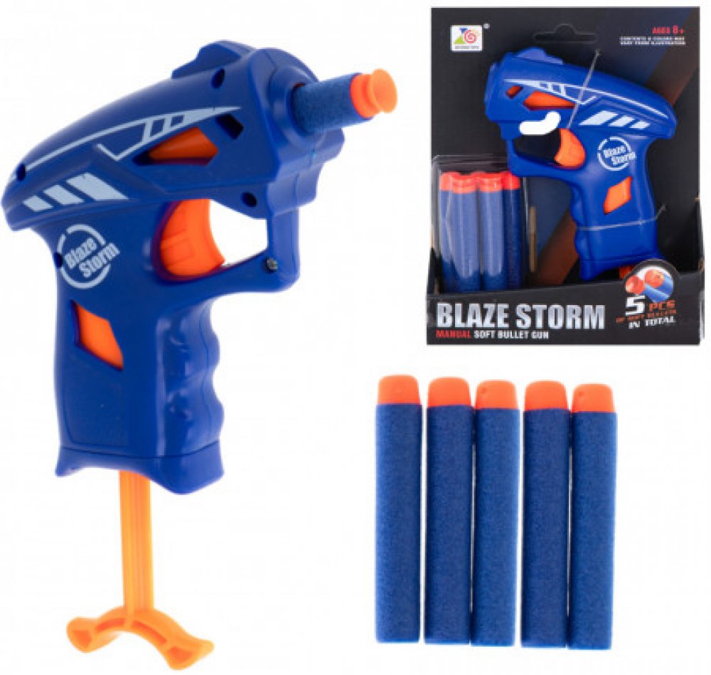 Skutečné komando potřebuje správnou zbraň. Připravte se na další hru! Fantastická mini pistole BLAZE STORM bude perfektní zbraní pro malého vojáka. Velmi lehký a extrémně šikovný. Tato hračka má vše, co potřebujete k „zastřelení soupeře“ a vítězství.