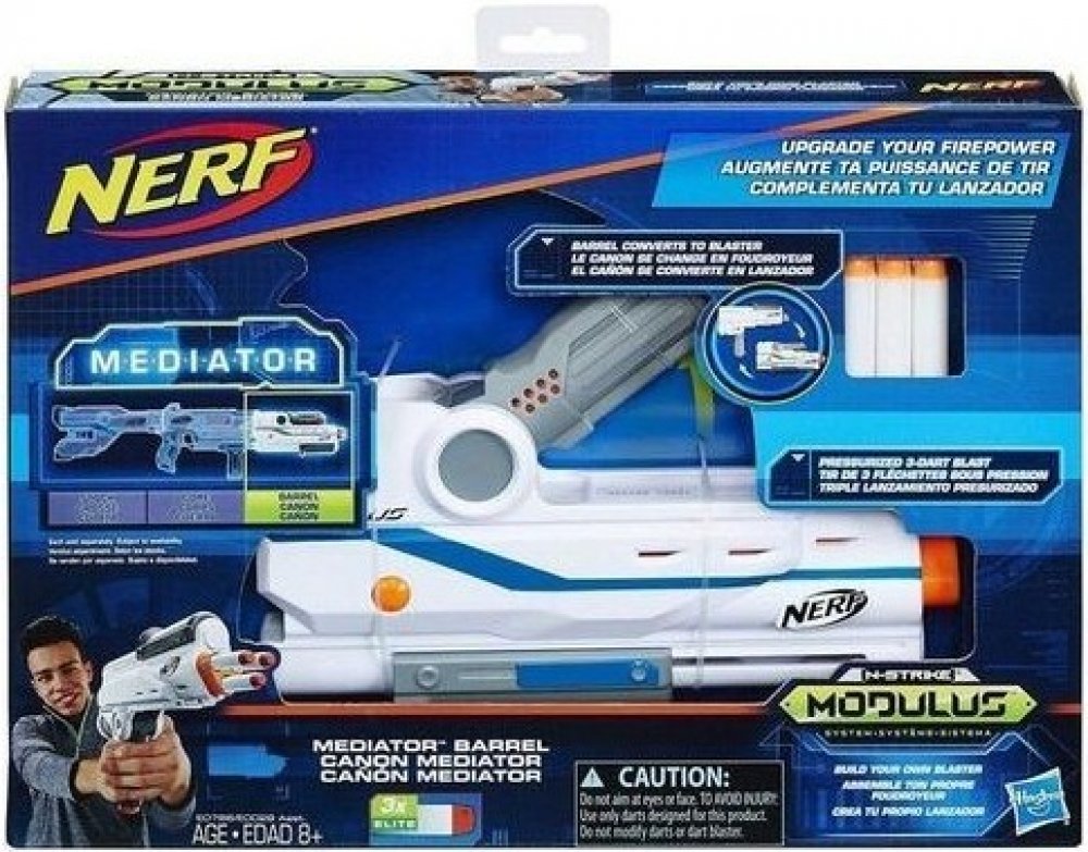 Upgraduj svou palebnou sílu na další úroveň s přídavnou hlavní k blasteru Nerf Modulus Mediator (prodávaný samostatně). Přidáním hlavně k jádru Mediatoru vytvoříte podtlakový blaster, který pálí 3 šipky naráz. Otočte rukojetí od hlavně k jádru, napumpujte a můžete pálit trojitou palbou. Dodáváno s 3 šipkami Modulus Elite. Bojuj a poskládej si dohromady svůj blaster Mediator XL pomocí jádra, rukoje...