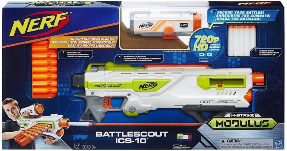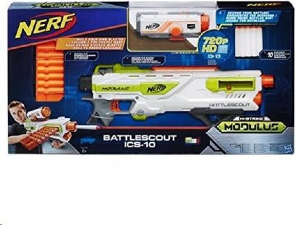Nová pistole série Modulus. Nerf N-Strike Modulus Battlescout ICS-10 B1756 je vybavena novým systémem nabíjení ICS. Díky tomuto systému již vůbec nedochází k zasekávání nábojů při střelbě.