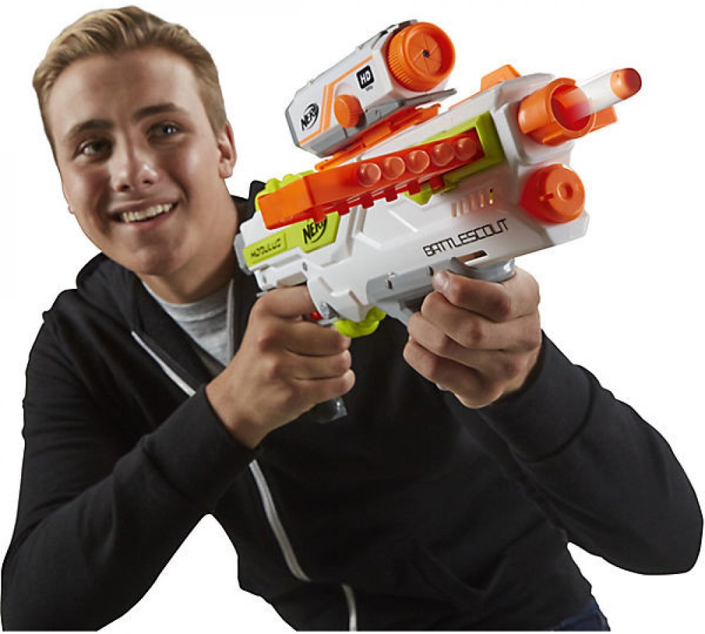 Součástí balení je 720HD kamera, která natáčí videa, nebo fotí v brilantní kvalitě. Kromě toho má pistole nový zásobník na 10 šipek. 10 MEGA nábojů (součástí balení).