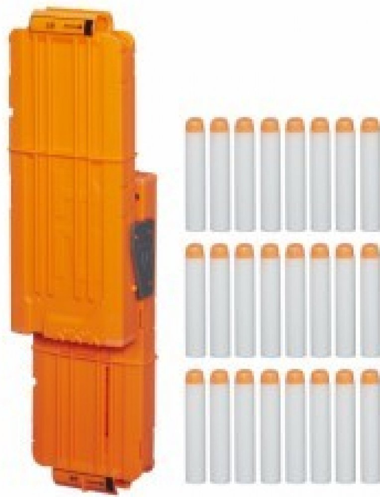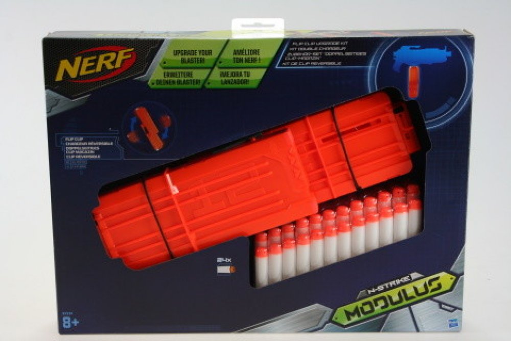 Vylepšete si svůj Nerf Modulus (možno dokoupit samostatně) větší zásobou šipek. Ted se šipky tak rychle nevystřílí. Zásobník s velkým množstvím šipek v jednom pro rychle dobíjeni. Rozpoutejte palbu 12 šipek a pak překvapte další palbou! Obsahuje zásobník s 24 Elite šipkami. Základní Nerf Modulus se prodává samostatně. Oboustranný zásobník Flip Clip Více akce s NERF zásobníkem. Obsahuje 24 šipek. Podrobnosti: • Űíslo výrobku výrobce: B1537EU4 • Oboustranný zásobník • 24 šipek, každý zásobník na 12 šípek • pro dvojí akci bez nabíjení • Kompatibilní s modulus a dalšími vhodnými pistolemi • Věk: od 8 let Pozor! Nemířit na oči a obličej! Nevhodné pro děti do 3 let. Hrozí vdechnutí malých částí.