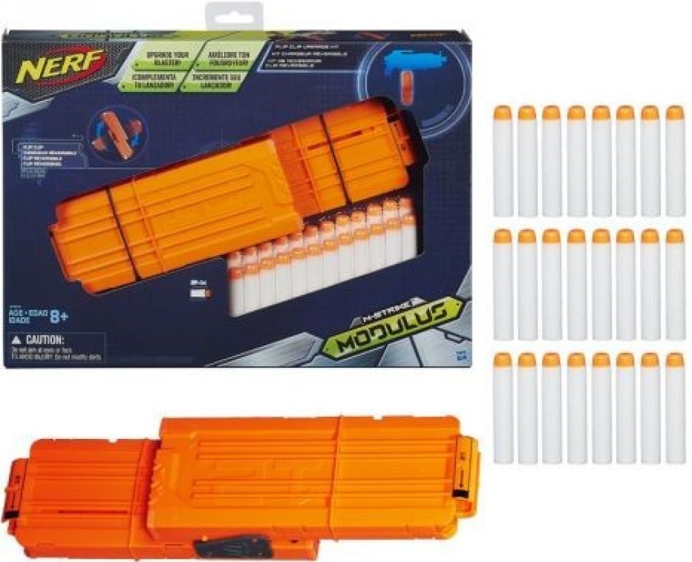 Vylepšete si svůj Nerf Modulus (možno dokoupit samostatně) větší zásobou šipek. Ted se šipky tak rychle nevystřílí. Zásobník s velkým množstvím šipek v jednom pro rychle dobíjeni. Rozpoutejte palbu 12 šipek a pak překvapte další palbou! Obsahuje zásobník s 24 Elite šipkami. Základní Nerf Modulus se prodává samostatně. Oboustranný zásobník Flip Clip Více akce s NERF zásobníkem. Obsahuje 24 šipek. P...