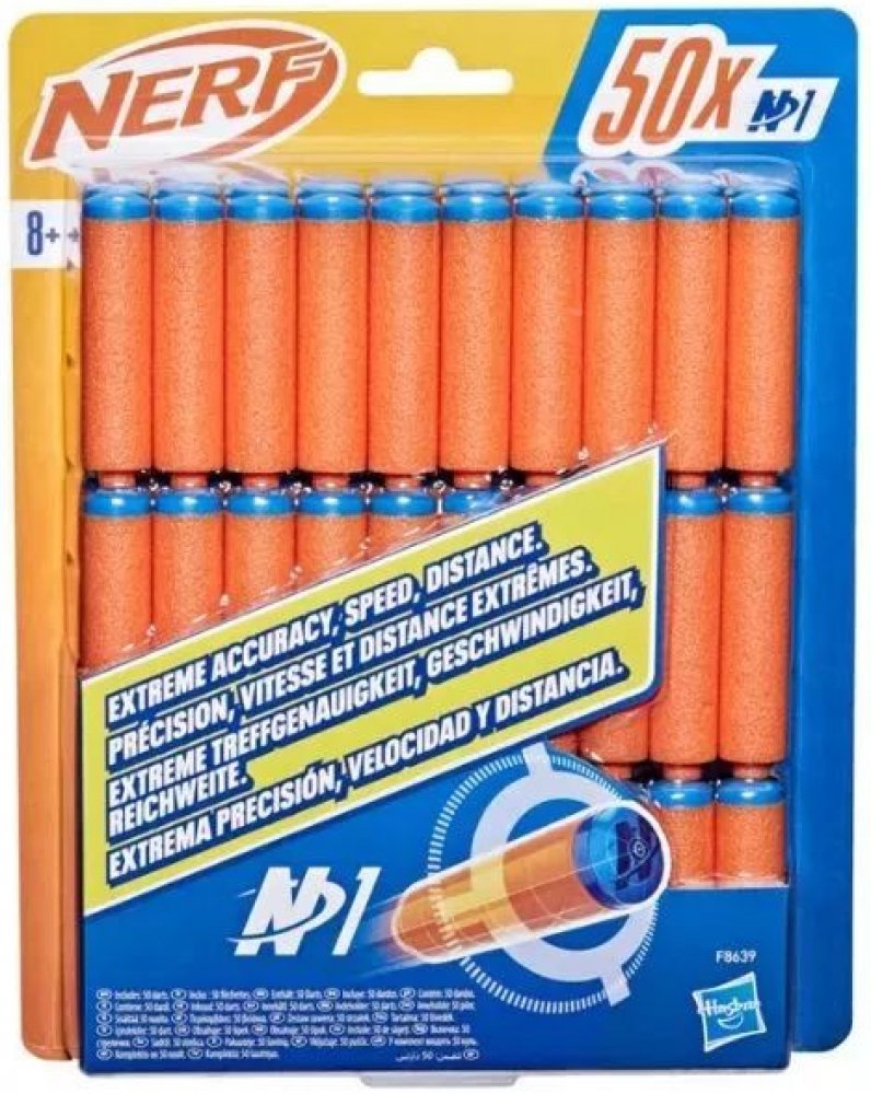 Nerf především! Pokud vám došla munice, nezoufejte! Během intenzivních Nerf bitev téměř vždy chybí nějaký projektil, takže místo toho, abyste museli zastavit hru a hledat jej, vám zásoba vždy pomůže a poskytne vám více času na hraní. Balíček obsahuje 50 pěnových nábojů Nerf N1.