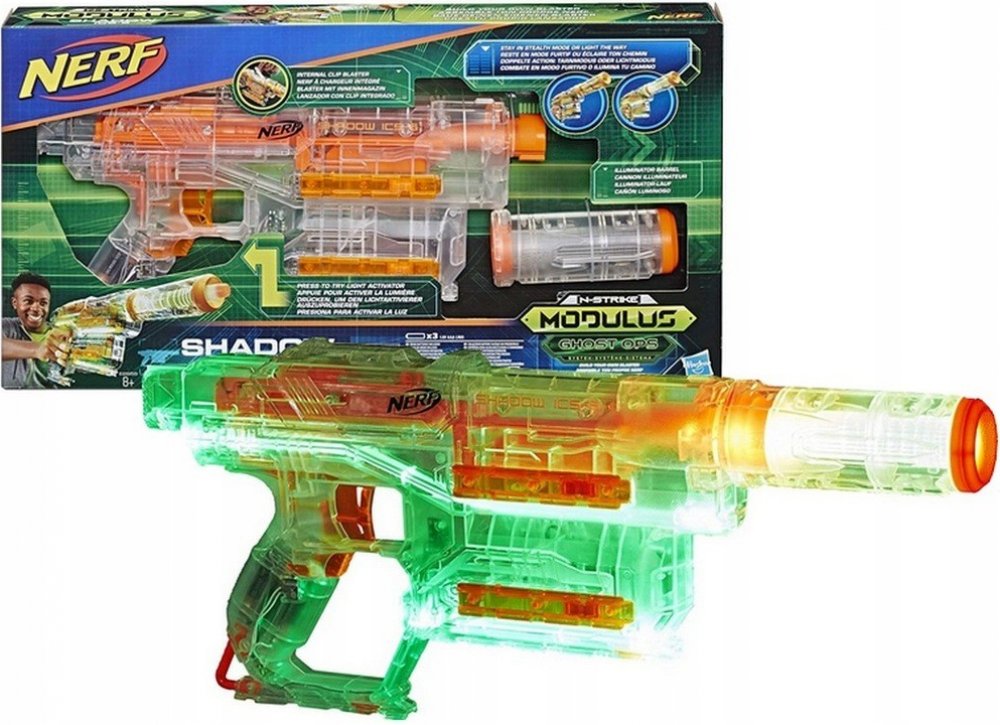 Chcete mít dokonalou kamufláž? Chcete zcela zmizet z dohledu? Udělejte to s Nerf vystřelovačem Modulus Ghost Ops Shadow ICS-6! Průhledné pouzdro rozsvítí stisknutím tlačítka. 4 taktické kolejnice, prodloužení hlavně a 6 šipek v balení.