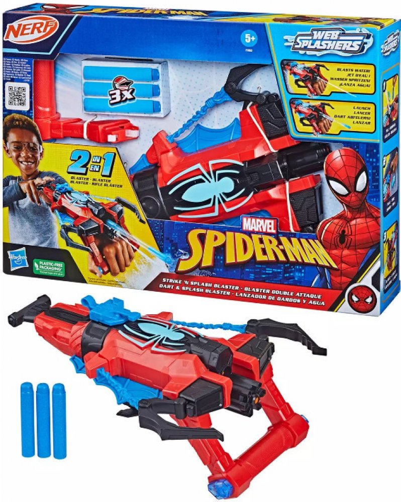 V tomto Strike N Splash Blaster se střetávají dva různé světy! Nerf a Spider-Man se spojili v jedné epické hračce, která spouští web a tryská vodu. Odstřelte své protivníky nerfovými šipkami a aktivujte funkci tryskání vody u hračky stisknutím tlačítka. Děti si zamilují předstírání, že jsou klasickým superhrdinou Marvelu, který má šmrnc. Tento Spider-Man Strike N Splash Nerf Blaster je perfektním dárkem pro fanoušky Marvel a Nerf ve věku od 5 let!