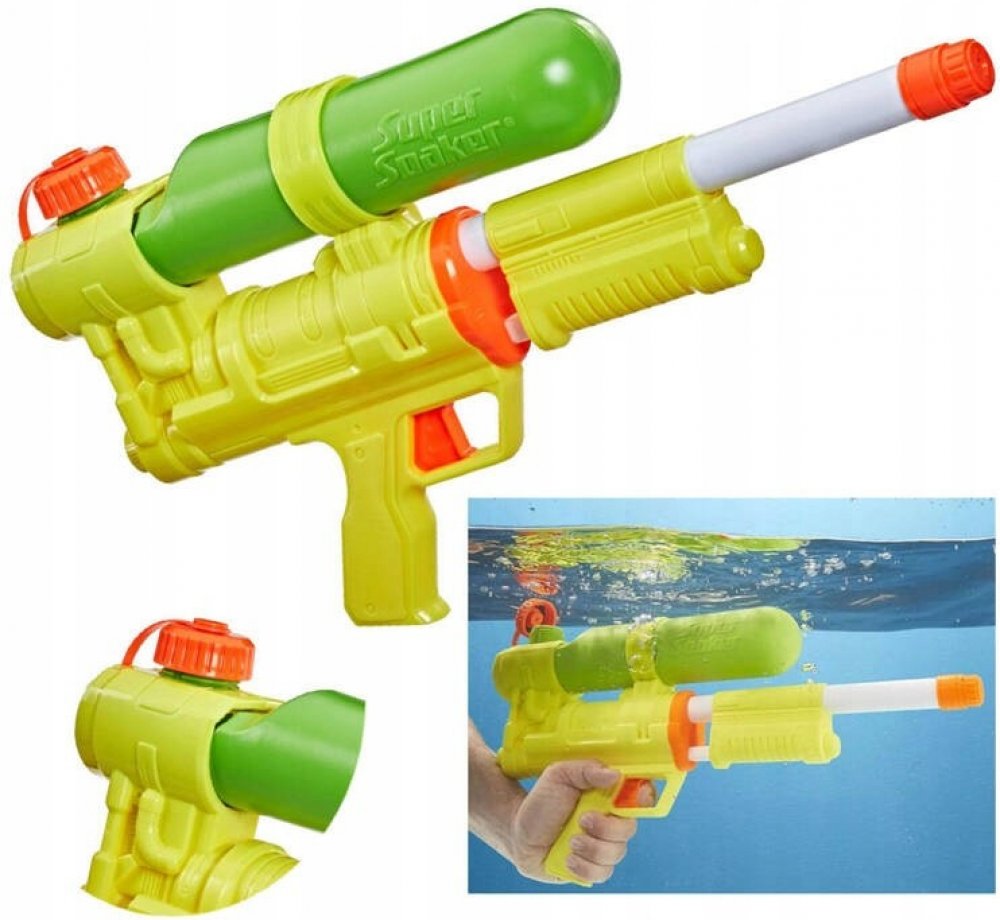 Vyskočte z domu a pusťte se do vodní bitvy s vystřelovači Nerf Super Soaker! S touto vodní zbraní můžete v pravý čas smočit protivníka od hlavy až k patě obrovským proudem vody! Nemusíte se obávat, že by vám došla munice, protože odpalovač má prostornou odšroubovatelnou nádrž na zelenou vodu o objemu půl litru. Chcete-li vystřelit, musíte nejprve nafouknout odpalovací zařízení posunutím zelené ruk...