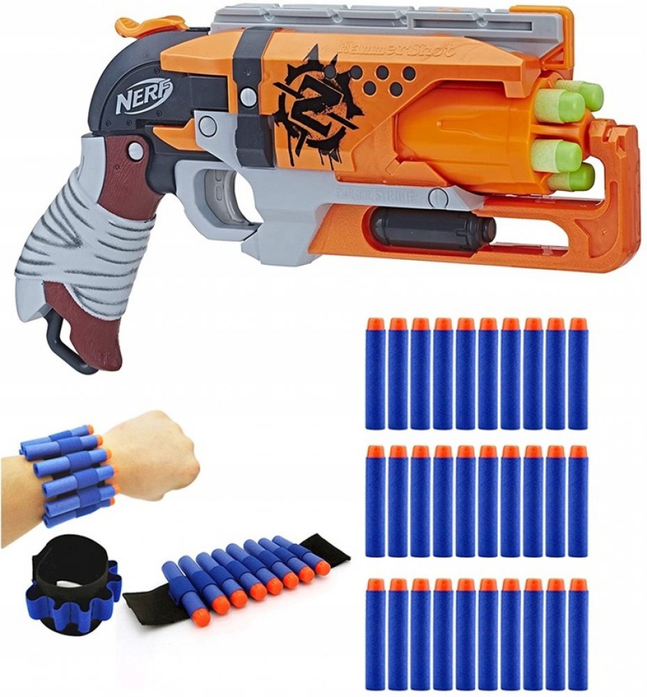 Je všeobecně známo, že zombie lze porazit pomocí zelených šipek. Kdo o tom nevěděl, ať si raději rychle koupí Hammershot... . a nejlépe dva! Tak právě dva, protože Hammershot je jediný revolver, který můžeme ovládat jednou rukou! (Mladší děti se budou muset při přebíjení podporovat druhou rukou).