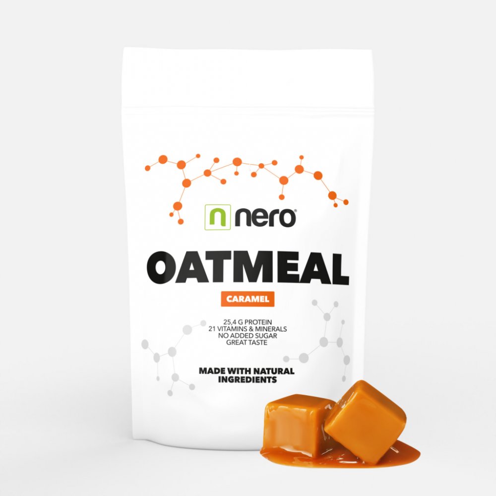 Nero OATMEAL je funkční kaše, která vás rychle a kvalitně zasytí. Celý vývoj včetně složení a účinků probíhal pod dohledem odborníků na výživu. Příprava je jednoduchá - rozmícháte s horkou vodou nebo teplým mlékem, promícháte, 3 min počkáte a máte hotovo. Dostatečně vás zasytí ráno i během dne jako výborná a rychlá svačinka. Vysoká kvalita surovin, žádný přidaný cukr, 21 vitamínů a minerálů, 25,4 g proteinu a další účinné látky.
