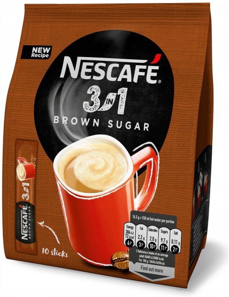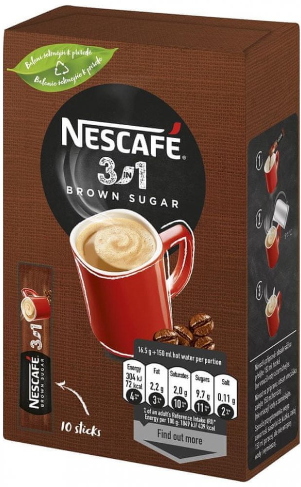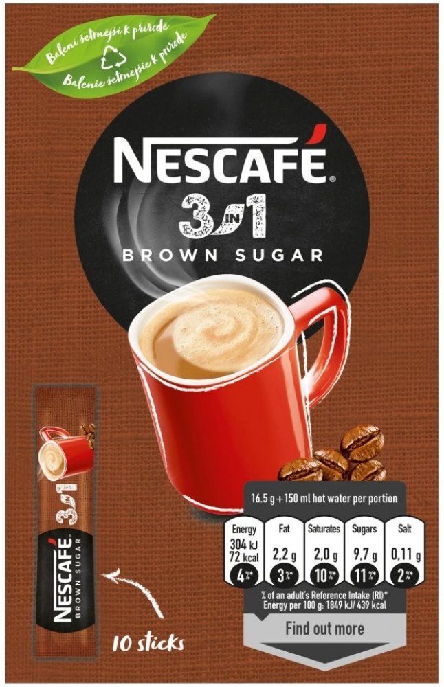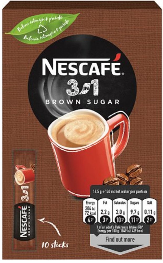 Ochutnejte nové NESCAFÉ 3in1 Brown Sugar s přírodním třtinovým cukrem nyní s vylepšenou recepturou a novým designem. Vychutnejte si vaši kávu s ještě bohatší chutí, intenzivním aroma a jemnou cremou (pěnou) na povrchu.