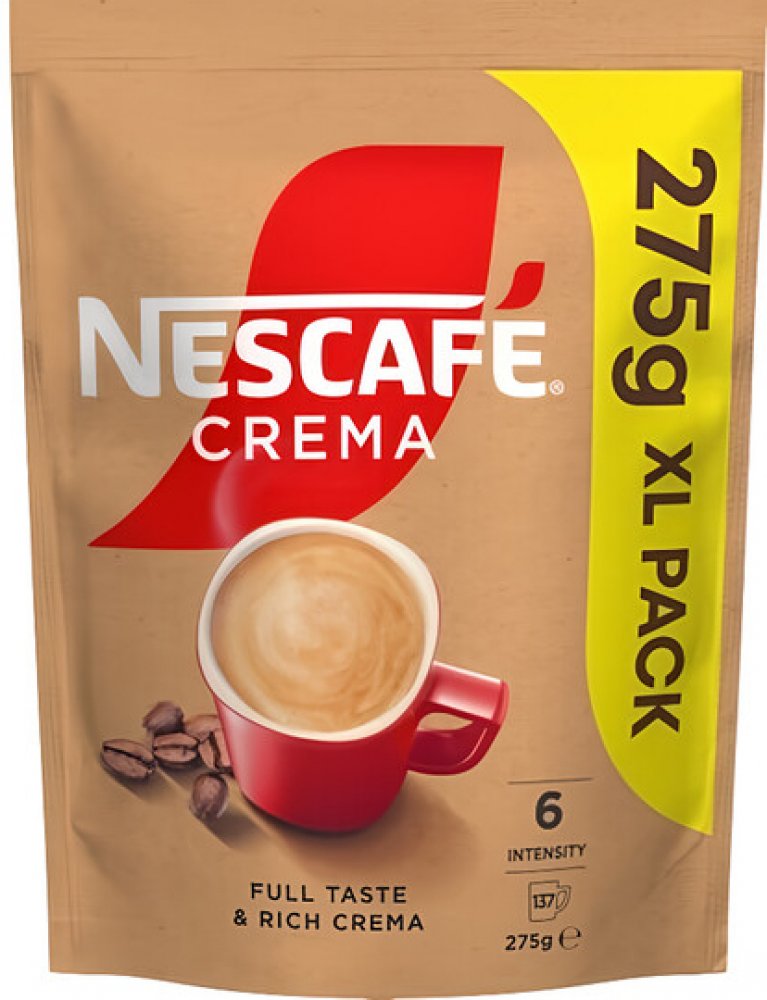 -- Díky plné chuti a požitku z bohaté vrstvy kávové pěny je NESCAFÉ CREMA jemným a lahodným způsobem jak začít nový den.Návod na přípravu1-2 kávové lžičky (2 g) přelijte 200 ml horké (ne vroucí) vody a zamíchejte. Vystačí až na 137 šálků.
