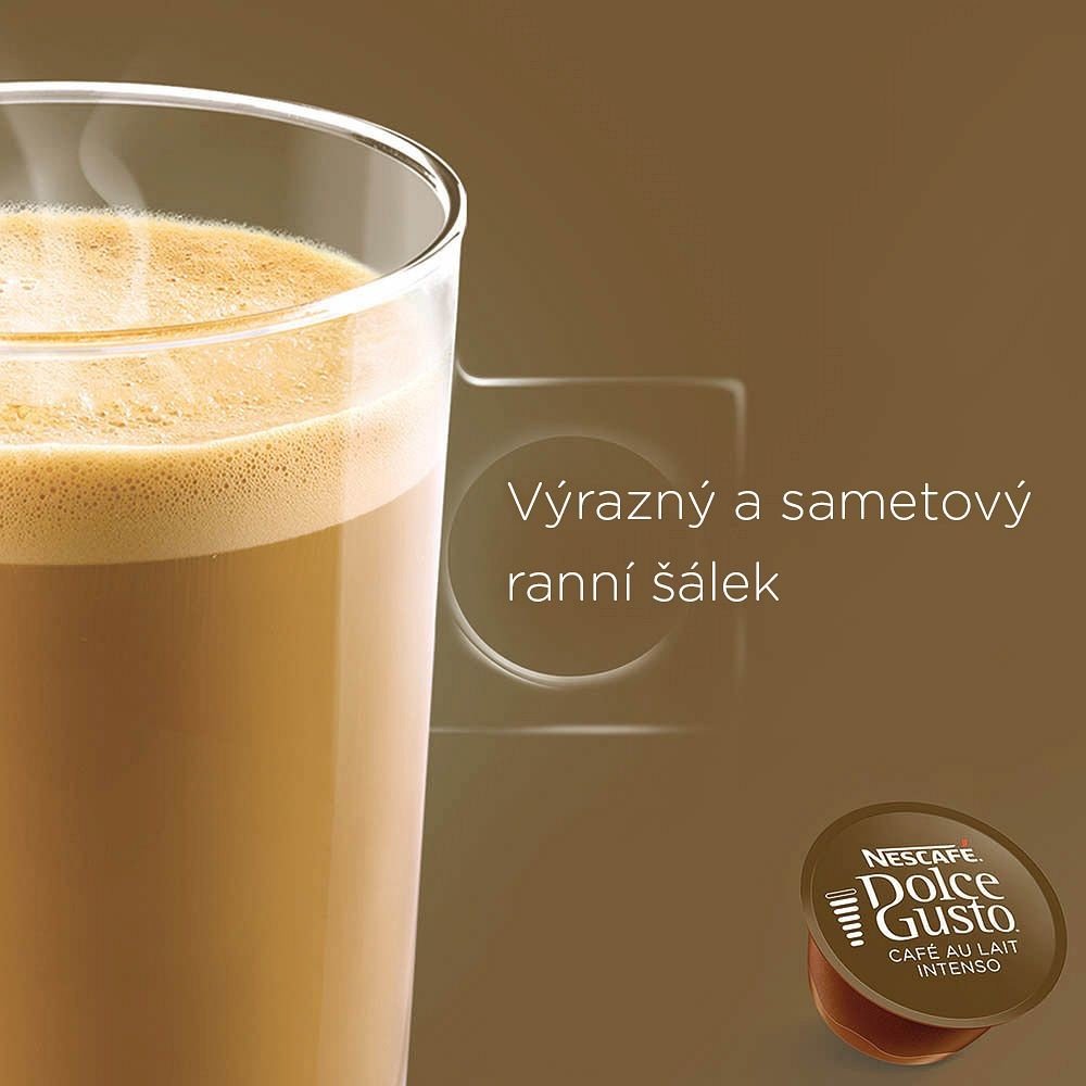 S kapslemi Nescafé Dolce Gusto Cafe Au Lait Intenso si můžete vychutnat francouzskou kávovou tradici v moderní a mimořádně pohodlné formě. Tento oblíbený nápoj v sobě pojí intenzivní chuť silné pražené kávy s krémovou jemností mléka – vše v jedné jediné kapsli, bez potřeby přidávat mléko či cukr.