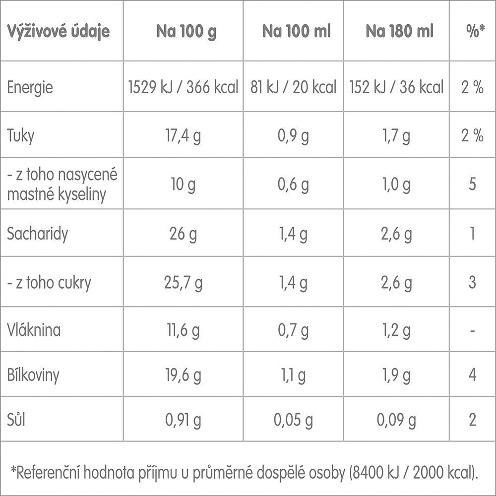 Nutriční hodnoty v 100 g výrobku