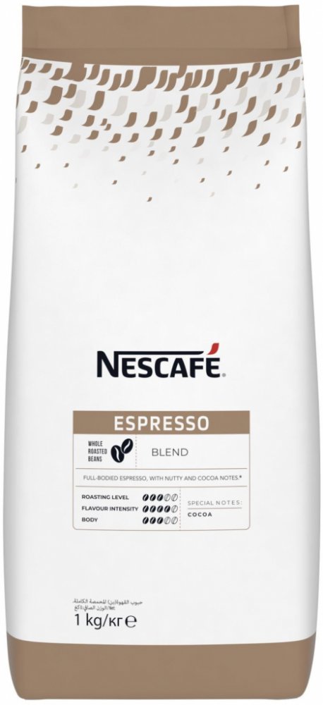 Nescafé Espresso je zrnková káva tvořená směsí 50 % arabika a 50 % robusta, dokonale vyvážená směs arabiky z Brazílie a robusty z Vietnamu Káva s plnou tělnatostí, výraznou hořkostí v chuti a velmi nízkou aciditou v dochuti, s tóny hořké čokolády a lískových oříšků Určena pro konzervativní milovníky espressa Hmotnost: 1 kg