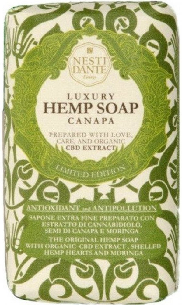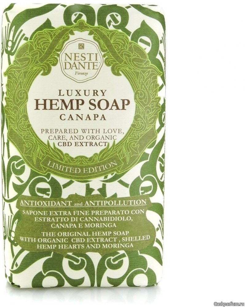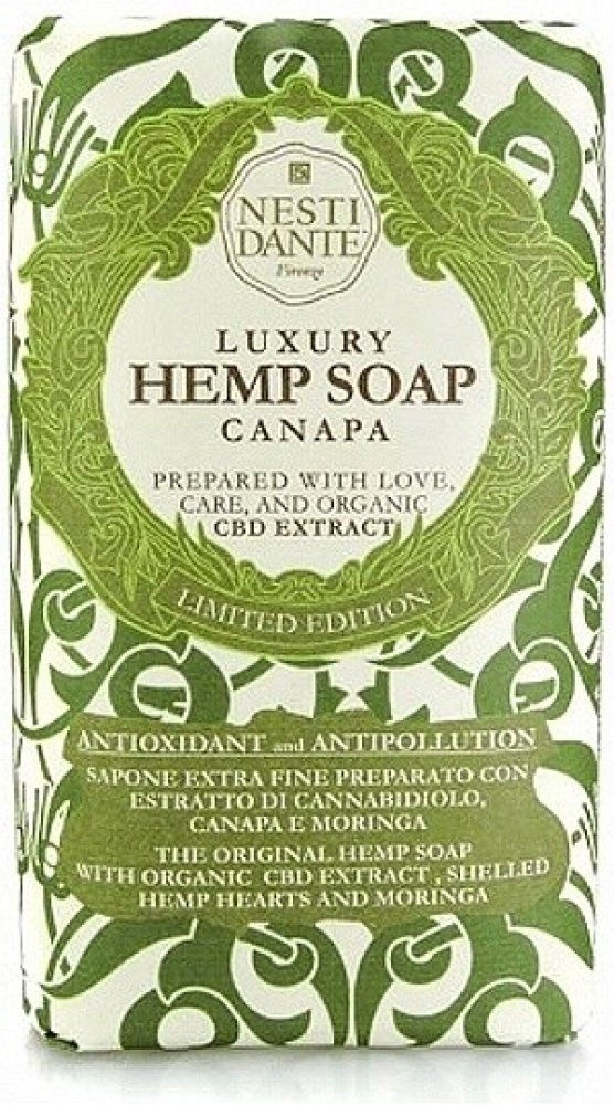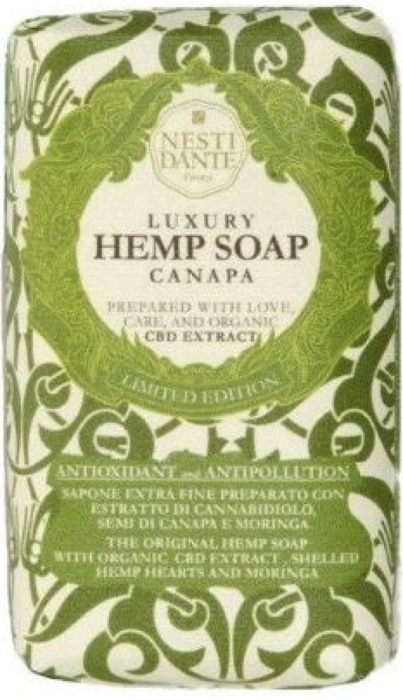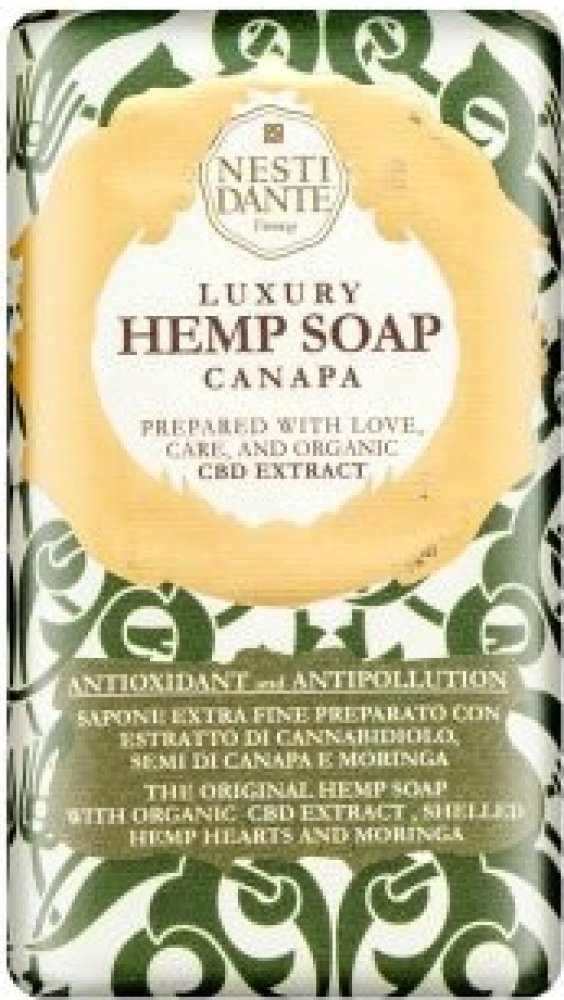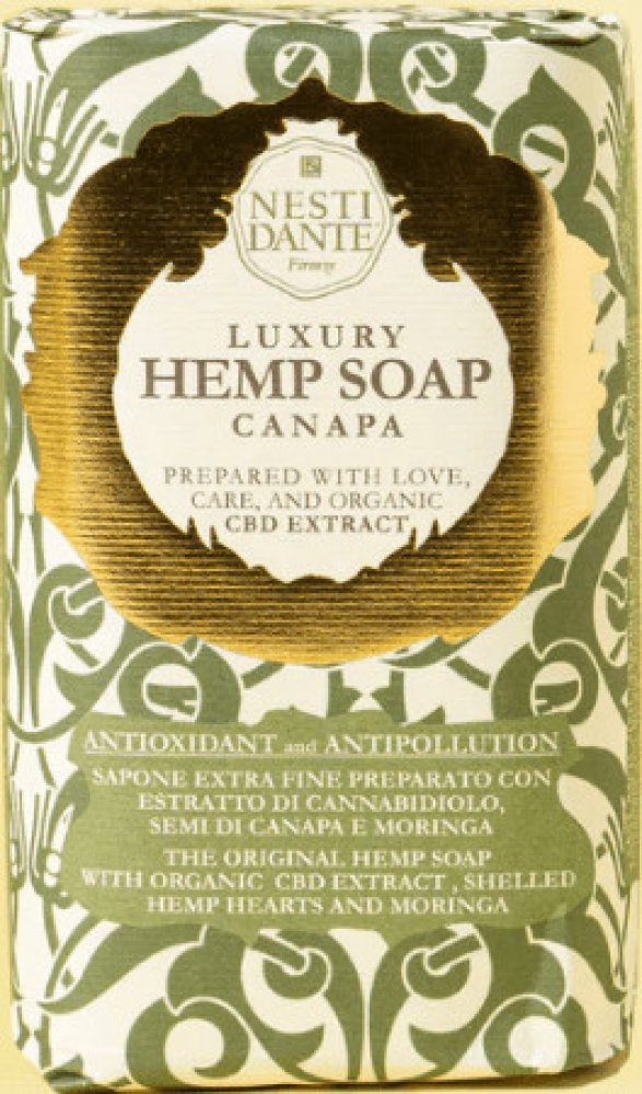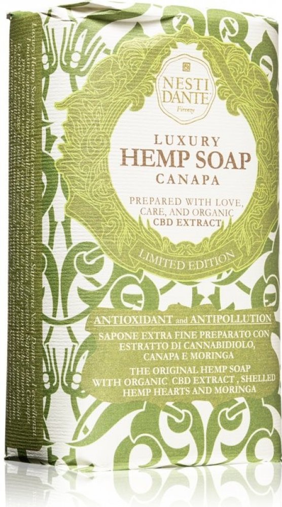 Konopné mýdlo připravené z extraktu z konopí, semen konopí a moringy, které odstraňuje prach a chrání pokožku před městskými znečišťujícími látkami. Extrakt kanabidiolu bohatý na chlorofyl a devět esenciálních aminokyselin je silný antioxidant, vynikající pro hlubokou hydrataci a dodávání pokožce na pružnosti.