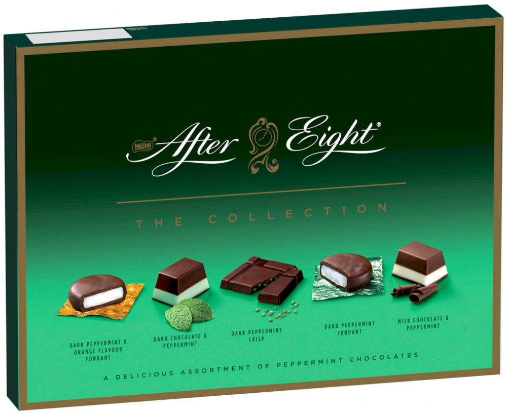Směs bonbónů s chutí peprmintu v mléčné a hořké čokolády.