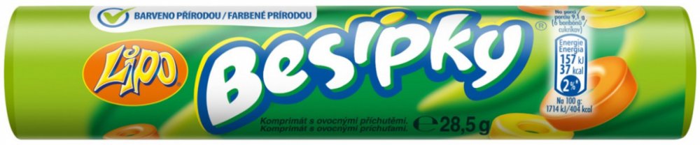 ZÁKONNÝ NÁZEV POTRAVINYKomprimát s ovocnými příchutěmi.SLOŽENÍcukr, glukózový sirup, kyseliny (kyselina citronová, askorbová), maltodextrin, plně ztužený řepkový tuk, protispékavá látka (hořečnaté soli mastných kyselin), aromata (citrón, pomeranč), rostlinný extrakt (světlice barvířská), barvivo (karoteny).ALERGENYNeuvádí se, MŮŽE OBSAHOVAT: Neuvádí seVÝŽIVOVÉ ÚDAJE/JEDNOTKAEnergetická hod
