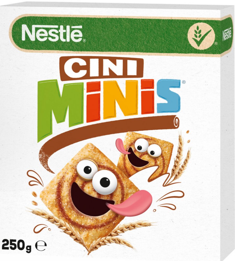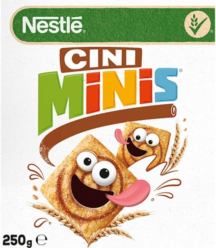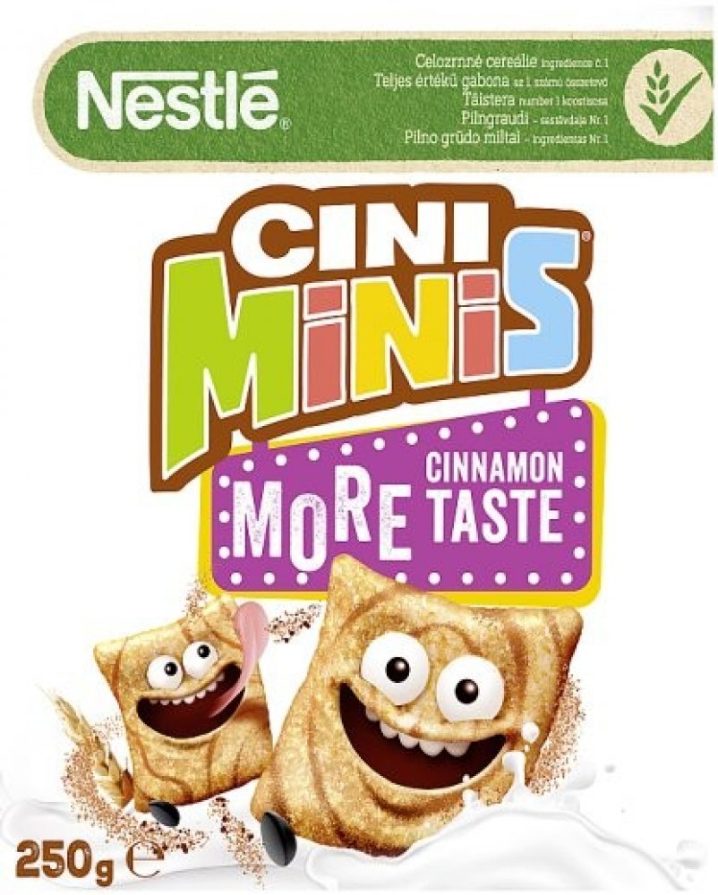 Cereální čtverečky CINI MINIS s chutí skořice. Šíleně skořicové cereální čtverečky CINI MINIS obsahují celozrnnou mouku a jsou zdrojem vlákniny. Neobsahují palmový olej ani umělá aromata. Se snídaňovými cereáliemi Nestlé se můžete Vy i celá Vaše rodina těšit z jejich výborné chuti a zároveň dostáváte to nejlepší z celého zrna. Fakta o cereáliích Nestlé Cini Minis: - Celozrnná mouka ingredience číslo 1. - Zdroj vlákniny. - Bez palmového oleje. - Bez umělých aromat.