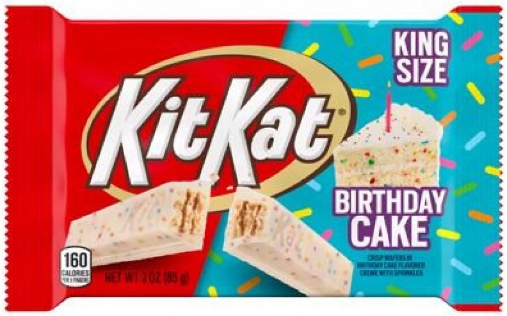 Kit Kat narozeninový dort je dobře známý, křupavý Oplatek obal zalitý krémem s příchutí narozeninového dortu. Vrstva světlého, sladkého krému byla obohacena barevným posyp...