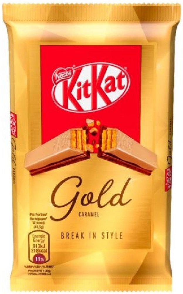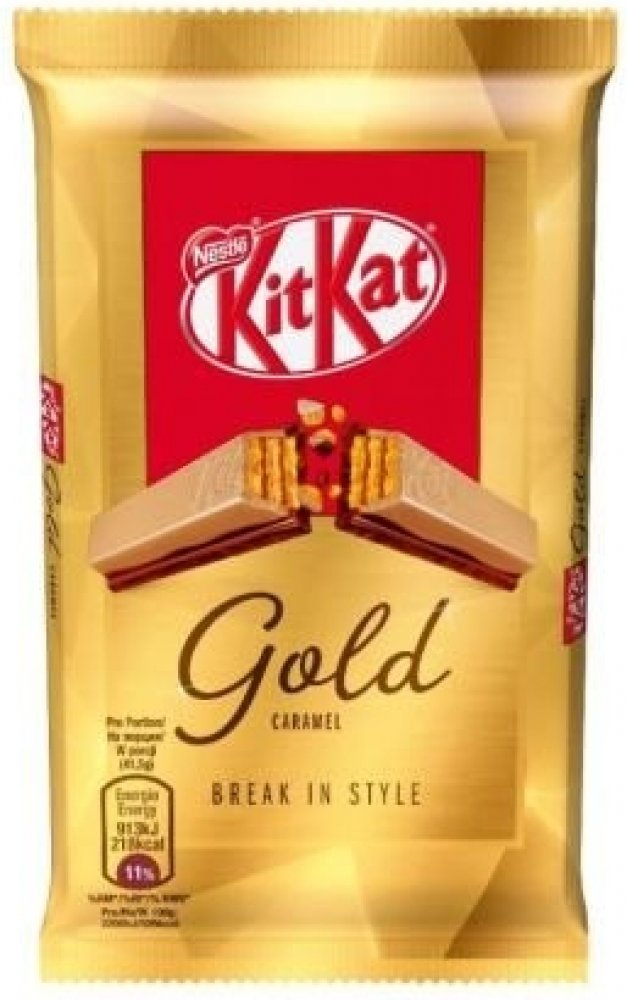 KitKat Gold je prémiová čokoládová tyčinka z rodiny KitKat. Je chutnou kombinací křupavé oplatky v mléčné čokoládě s bílou čokoládou s karamelovými tóny.