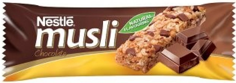 Přírodní aroma, Müsli tyčinka s kousky mléčné čokolády.S Nestlé Müsli tyčinkami nemusíte dělat kompromisy mezi chutí a životním stylem. Tyčinka Nestlé Müsli s kousky čokolády představuje skvělou kombinaci chuti a složení. Jejím základem jsou pečlivě vybrané ovesné vločky a kousky lahodné čokolády, obsahuje přírodní aroma. , Müsli tyčinka s kousky mléčné čokolády.,