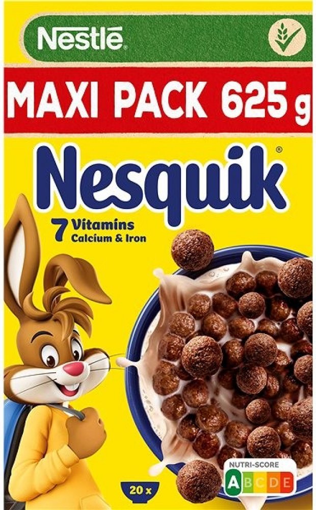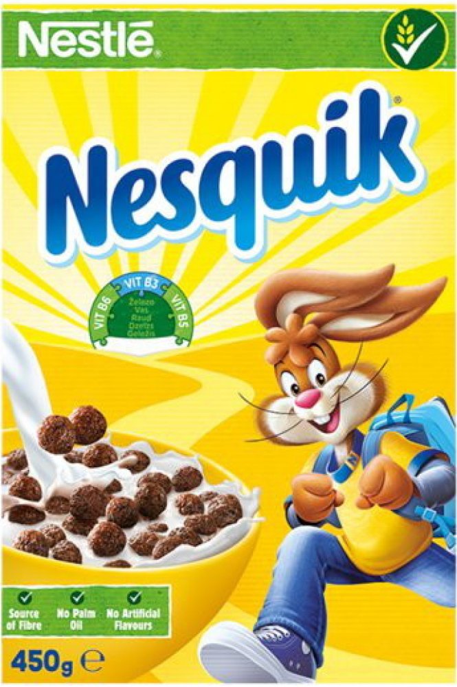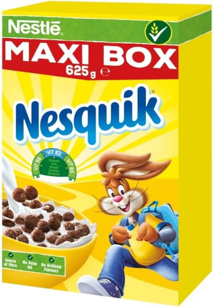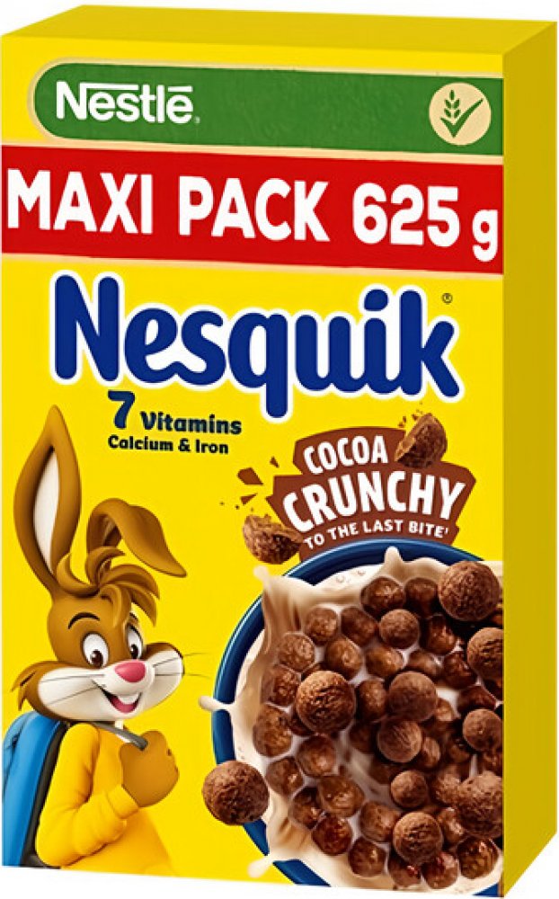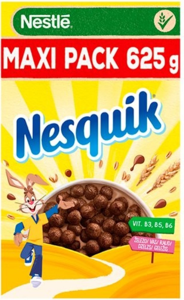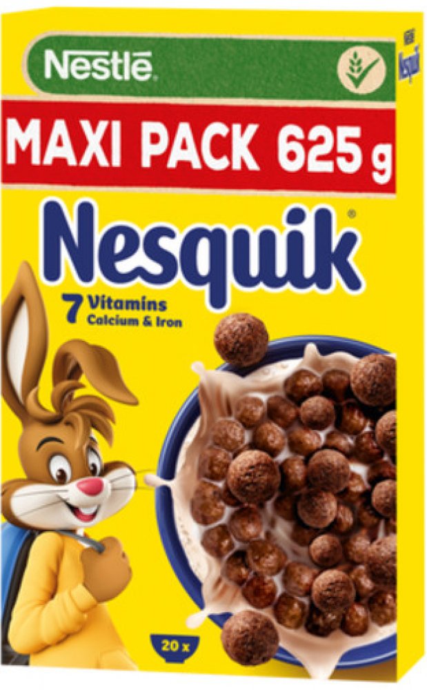 Cereální kakaové kuličky NESQUIK obsahují celozrnné cereálie a jsou zdrojem vlákniny. Se snídaňovými cereáliemi Nestlé se můžete Vy i celá Vaše rodina těšit z jejich výborné chuti a zároveň dostáváte to nejlepší z celého zrna. Hledejte pečeť celozrnnosti na obalech snídaňových cereálií Nestlé. Nyní navíc ve výhodném balení Maxibox!Celozrnné cereálie ingredience č. 1. Vit B3, B5, B6, ŽELEZO. NESQUI...