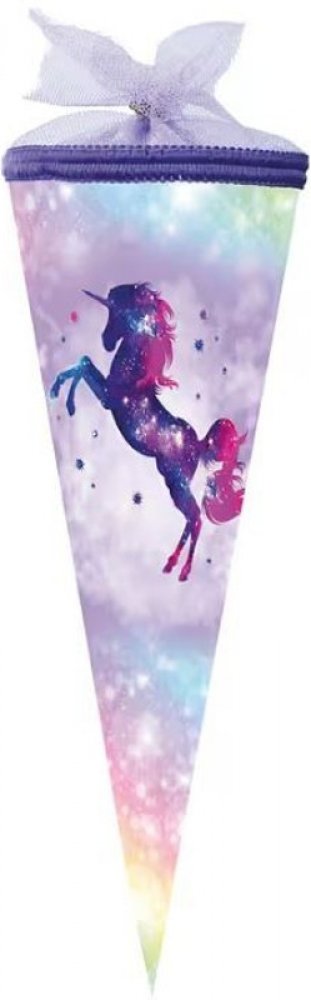 Papírový školní kornout kulatý o výšce 50 cm s tylovým lemem. Naplňte dětem kornout oblíbenými sladkostmi, oříšky, ovocem, pastelkami či drobnými hračkami, aby pro ně byl první školní den nezapomenutelným zážitkem.