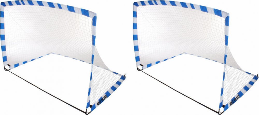 Sada Handball Goals Pop Up značky Net Playz zahrnuje dvě házenkářské branky vhodné pro trénink do škol, sportovních klubů a pro rekreační hráče. Konstrukce je vytvořená ze sklolaminátových tyčí s polyesterovou sítí a její složení je velice jednoduché a rychlé. Skládací branka má rozměry 180 x 125 x 120 cm (šířka x výška x hloubka) a hmotnost přibližně 1,6 kg. Součástí je také osm plastových kolíků...