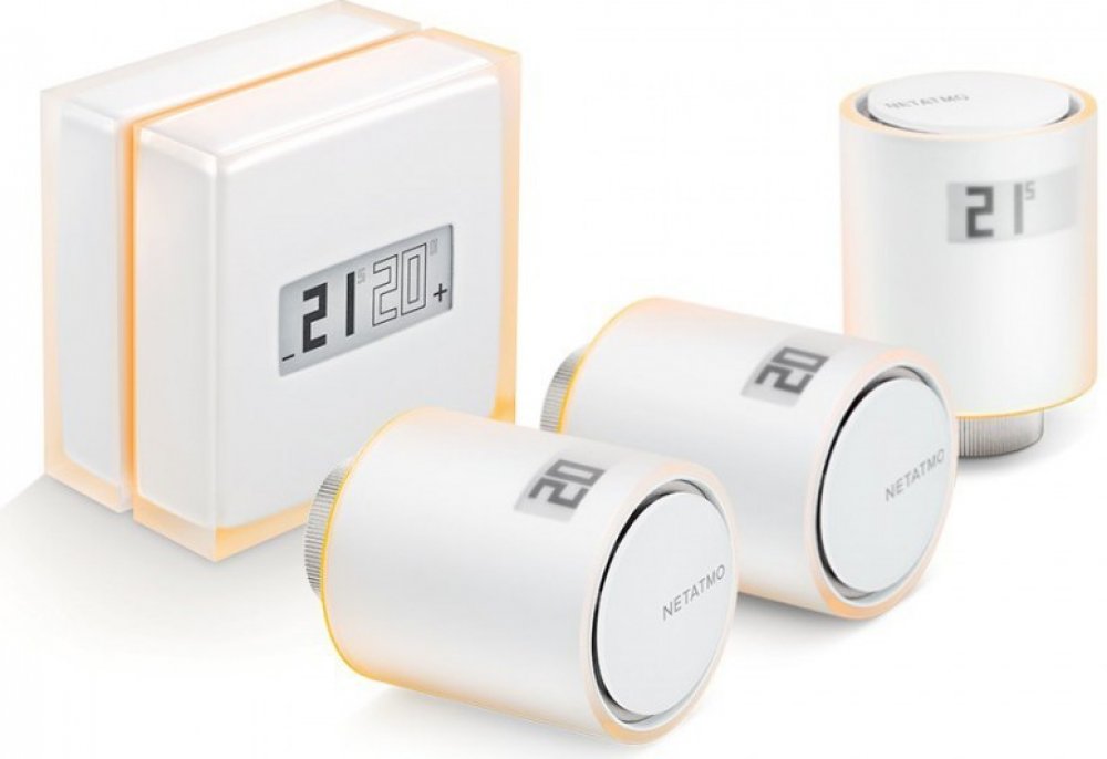 Výhodná sada termostatu Netatmo Thermostat a 3 kusů hlavic Netatmo Smart Radiator Valves