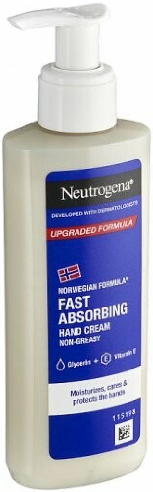 Neutrogena Rychle se vstřebávající krém na ruce okamžitě dodává hydrataci pokožce vašich rukou a obnovuje její hebkost a pružnost. Lehká, nemastná textura se rychle vstřebává a přináší okamžitý pocit úlevy. Vhodný pro každodenní použití. Okamžitě se vstřebává. Lehká, nemastná textura.