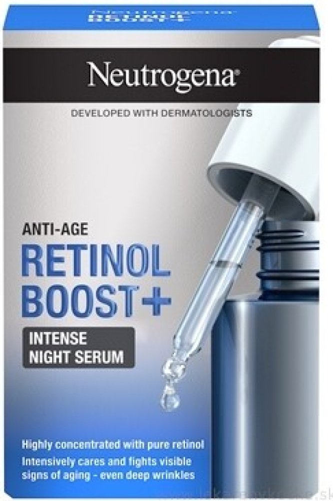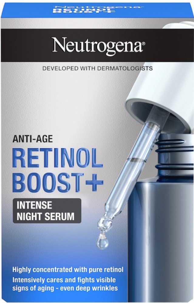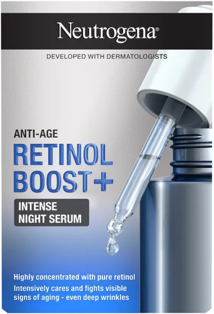 Rozlučte se s viditelnými známkami stárnutí, včetně hlubokých vrásek, za pomoci vysoce koncentrovaného nočního pleťového séra Neutrogena Retinol Boost+ Intense Night Serum. Účinně redukuje vrásky a intenzivně pečuje a obnovuje pleť během noci. Unikátní složení nočního séra obsahuje nejvyšší koncentraci retinolu z celé řady Retinol Boost.