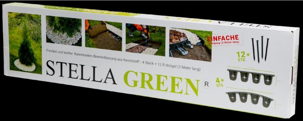 Sada obsahující neviditelný obrubník 80 cm 4 kusy a hřeby 12 ks.
