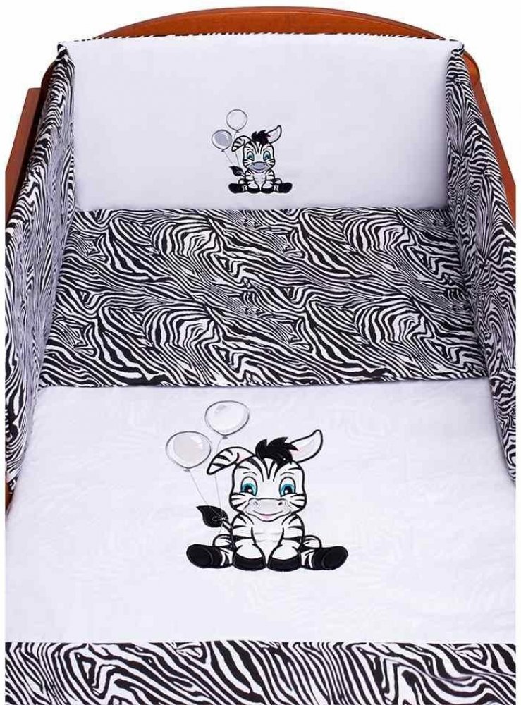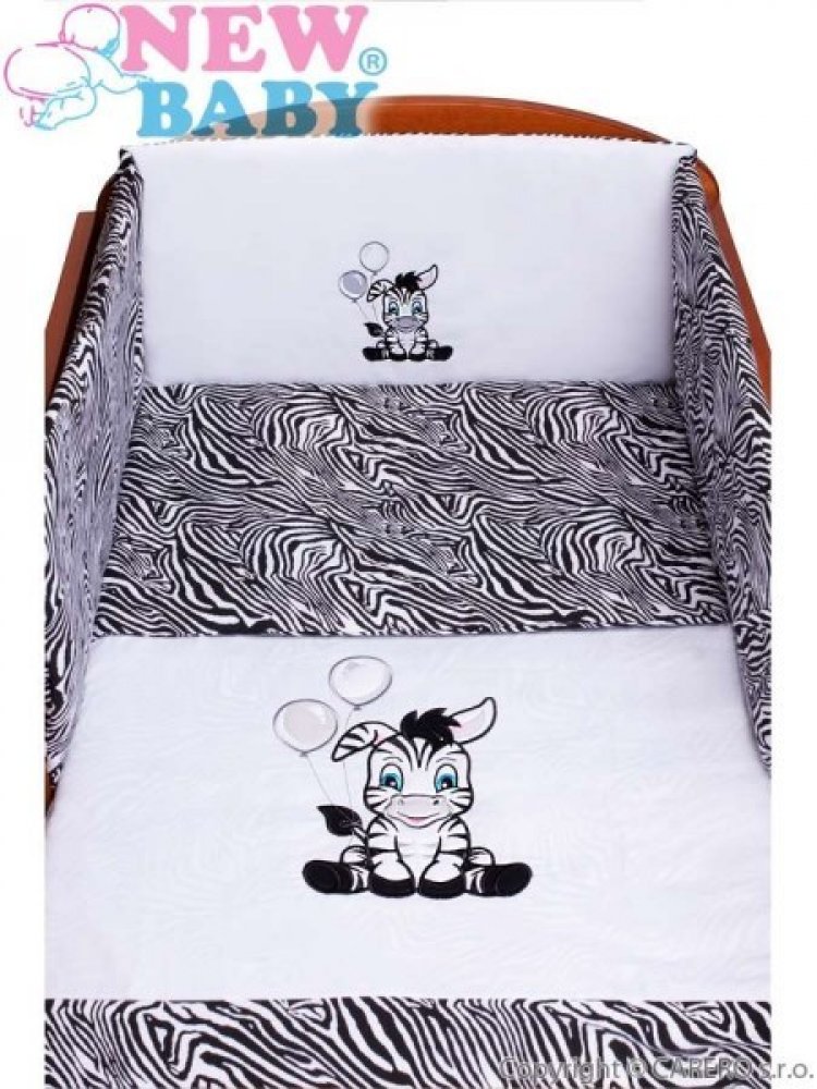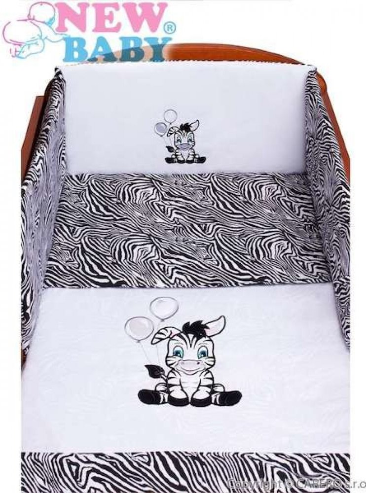 Dětská bavlněná 3-dílná souprava do postýlky New Baby Zebra pro Vaše miminko. Soupravu zdobí veselý obrázek zebry s pruhy a je celopotištěná výraznými černobílými pruhy. Je vyrobena z měkkého, příjemného materiálu.