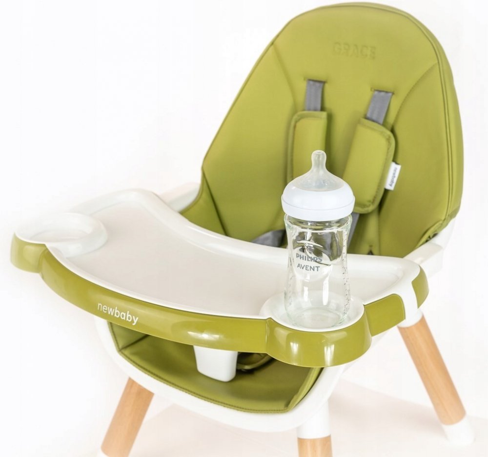 Moderní a originální dětská jídelní židlička Grace české značky New Baby. Kombinace bukového dřeva a moderních barev zaručuje jedinečný design a minimalismus. Jídelní židlička Grace 3v1 je perfektní volbou pro první dětskou židličku. Dětská židlička kombinuje 3 funkce: vysokou jídelní židli na krmení, nízkou dětskou židličku a sadu stoleček + židlička.