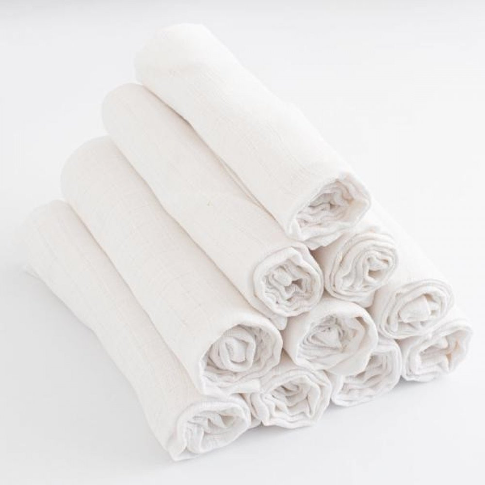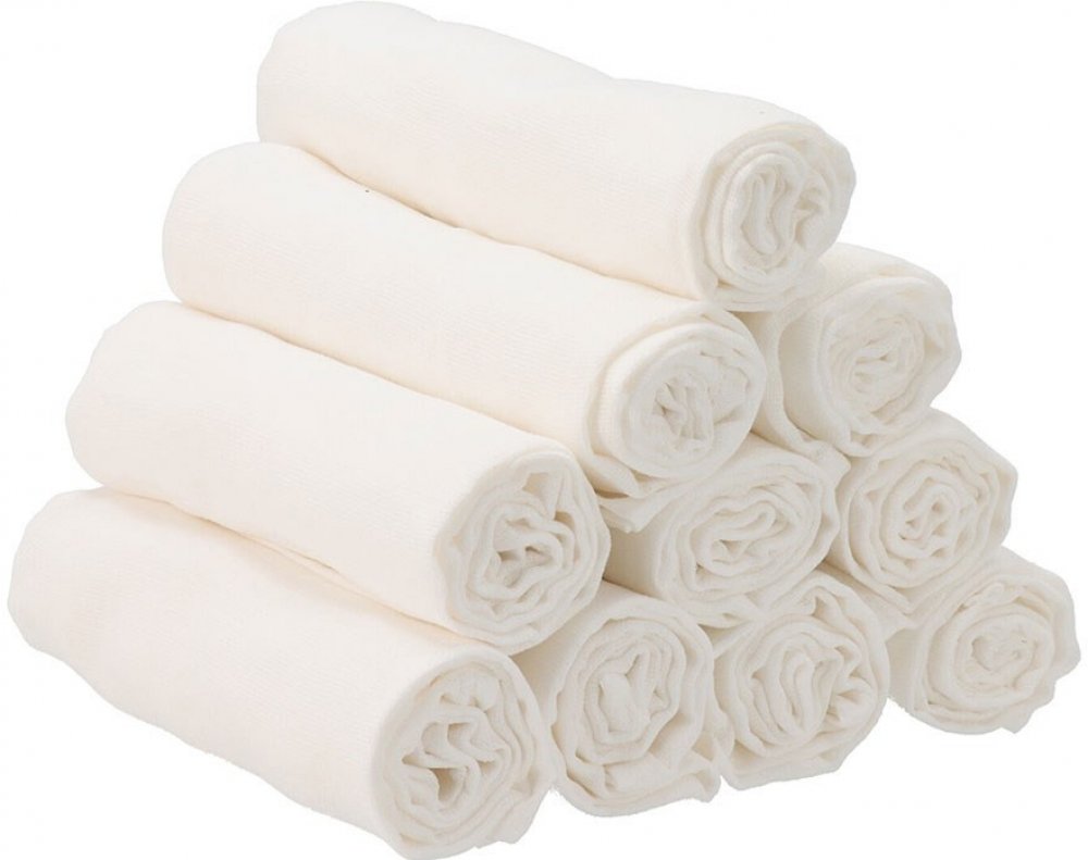 New baby látkové bavlněné plochá/prefold běžná údržba čtvercové bílé bez manžety 10 ks praní na 90 stupňů, nesušit v sušičce