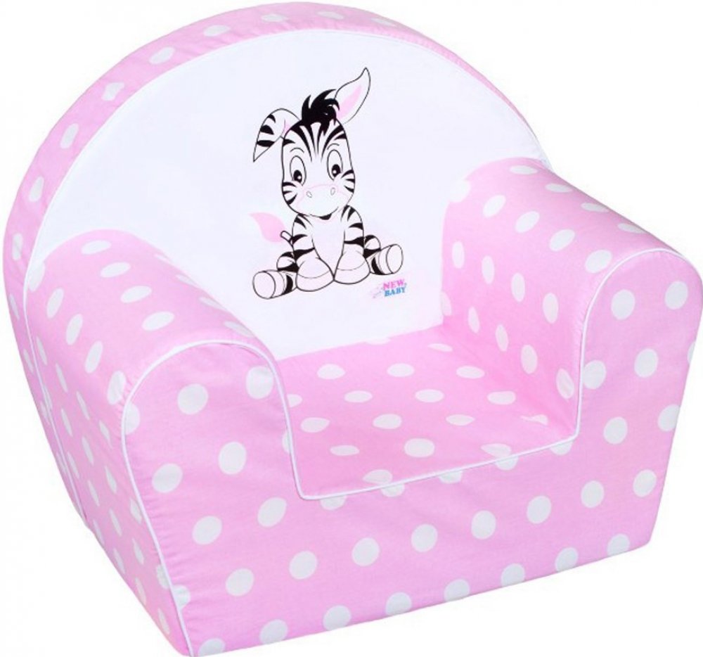 Dětské křesílko New Baby Zebra je skvělým a velmi oblíbeným doplňkem do dětského pokojíčku. Toto křeslo pro nejmenší děti je vyrobeno z měkkého materiálu a má snímatelný bavlněný potah, který lze prát. Potah má velmi příjemné barvy s potiskem puntíků a zdobí ho obrázek roztomilé zebry, čímž dítě zaujme. Dítěti zajistí komfort a vkusně doplní dětský pokojíček. Křeslo může sloužit během odpočinku či koukání na pohádky, nebo také při zábavě. Rozměry: vxš: cca 42x53 cm, výška opěradla cca 29 cm, šířka sedadla cca 25 cm. Složení: potah 100% bavlna, vnitřní materiál: polyuretánová pěna.