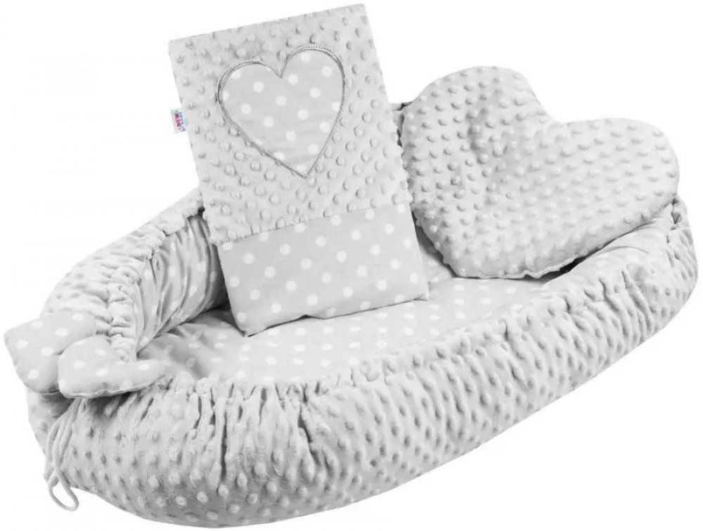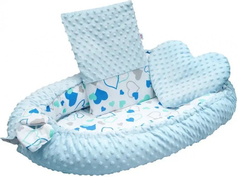 Luxusní hnízdečko s peřinkou pro miminka New Baby Srdíčko. Hnízdečko je praktický vynikající pomocník v prvních měsících života dítěte. Hnízdečko je oboustranné, může se používat z vnější i vnitřní strany. Hnízdečko má praktickou šňůrku, kterou lze upravovat velikost, může se více stáhnout anebo úplně uvolnit. Hnízdečko je vyrobené ze dvou typů tkanin, první je velmi měkká a na dotek příjemná, heb...