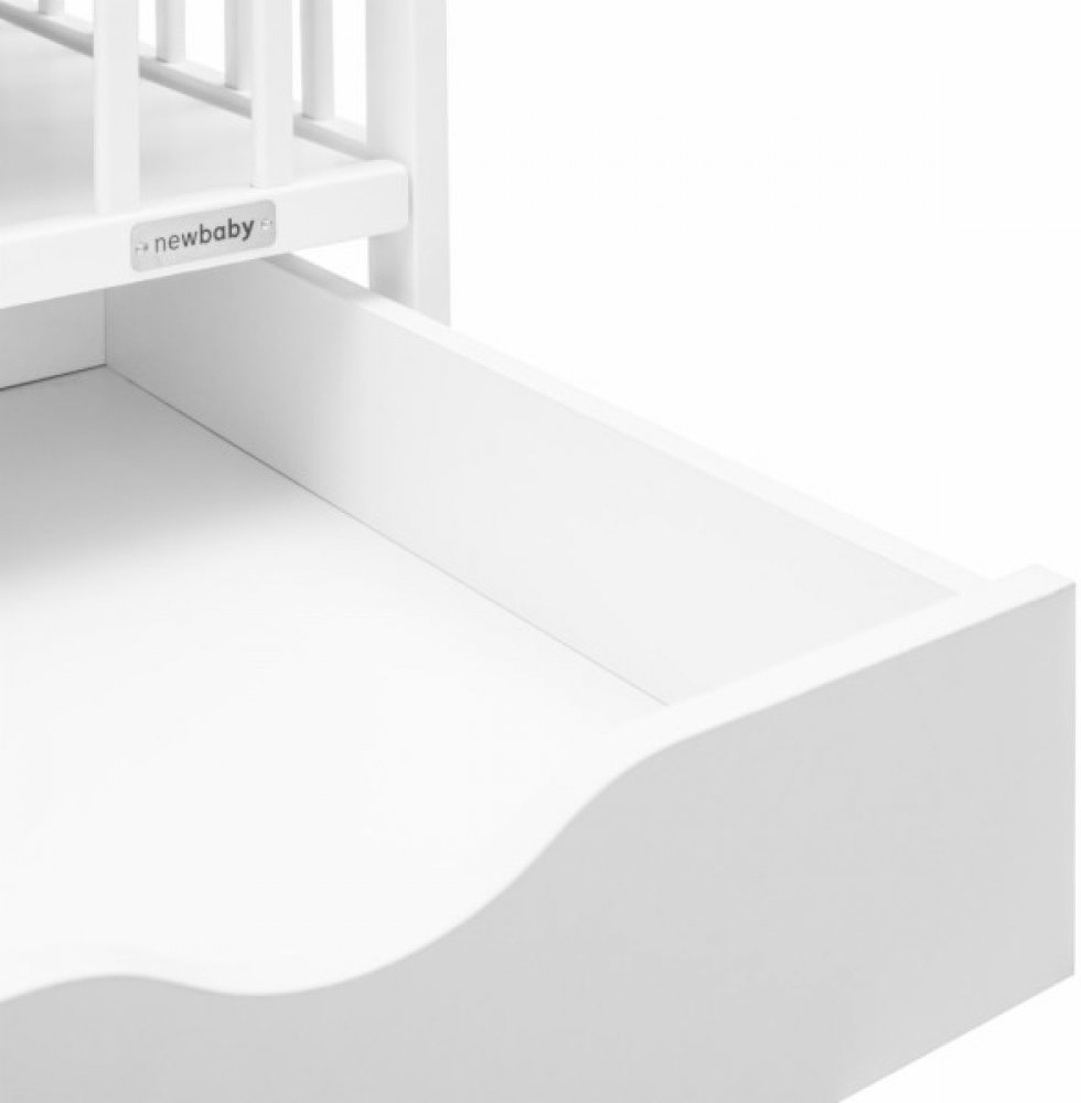 Postýlka je vybavena zásuvkou, která je k postýlce připevněna kuličkovými pojezdy, nedotýká se země.