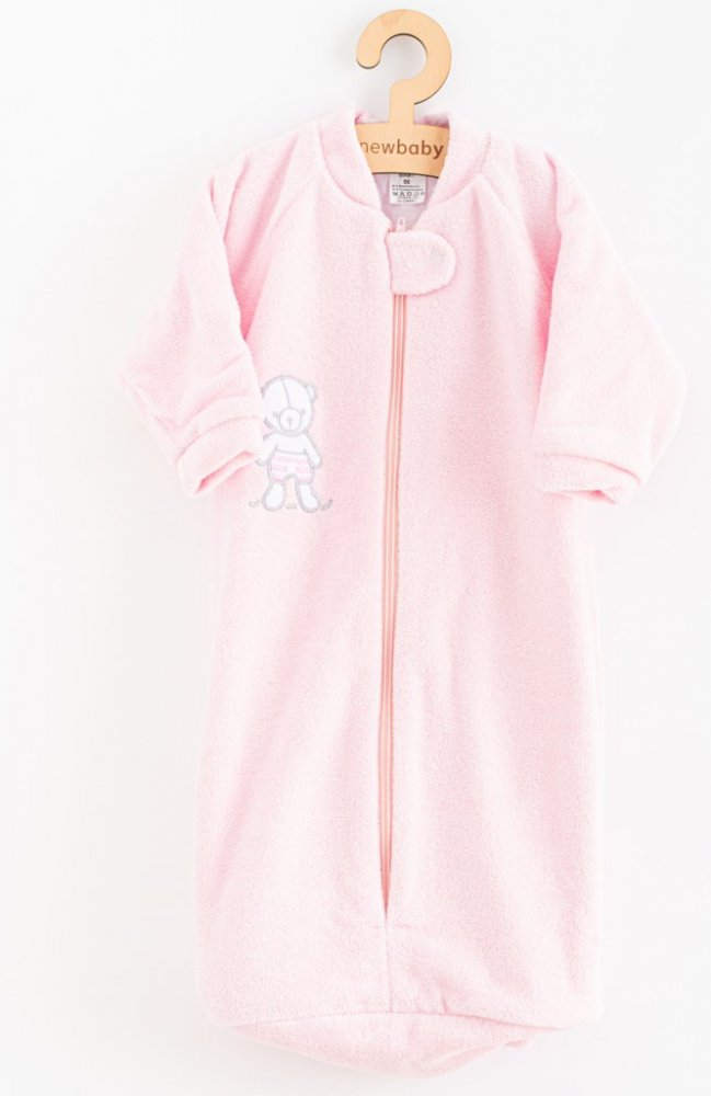 Praktický a hřejivý froté kojenecký spací pytel New Baby pro miminka v krásné pastelové barvě s našitým obrázkem medvídka. Spací pytel je vhodný pro miminka už od narození pro svou jemnost a měkkost. Celý spací pytel je podšitý bavlněnou podšívkou. Správným výběrem spacího vaku zamezíte přehřátí, nebo nachlazení miminka. Prodloužíte miminku nerušené spinkání, protože se nebudí kvůli odkopání, chla...
