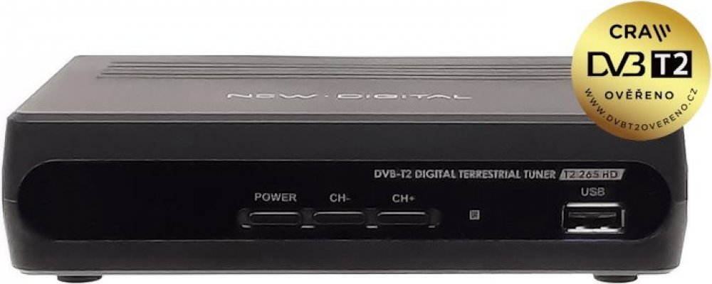 FULL HD set top box pro příjem nového DVB-T2 H.265/HEVc vysílání. Je tak připraven i na budoucí změny ve vysílání, se kterým si starší televizory neporadí. Přijímač získal certifikaci DVB-T2 ověřeno, která garantuje 100% funkčnost a kompatibilitu novým vysíláním DVB-T2 HEVC v České Republice.