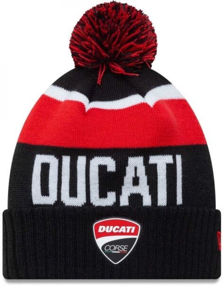 Kulich New Era DUCATI SPORT BEANIE s logem Ducati na přední straně. Kulich má ohnutý spodní lem, na boku vyšité malé logo značky, bambuli a je vyrobený z hřejivého materiálu.