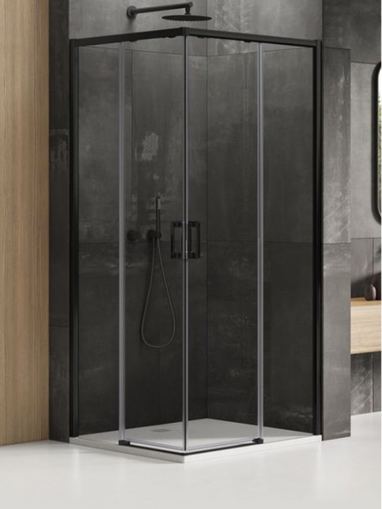 - rozměry: 90 cm (D) x 80 cm (P) - výška: 200 cm - skutečná velikost dveří se stěnou (A): 87,5-89,5 cm - skutečná velikost dveří se stěnou (B): 89,5 cm: 77,5-79,5 cm - skutečná velikost krátké stěny (C): 39 cm - skutečný rozměr krátké stěny (D): 34 cm - šířka vstupu (E): 44 cm - tvrzené sklo o tloušťce 6 mm - sklo s povrchovou úpravou Active Shield 2.0 - povrchová úprava skla aplikovaná mechanicky a stabilizovaná UV a IR zářením - zabraňuje vzniku kapek vody, usazenin vodního kamene a nečistot z prostředků denní hygieny - barva profilu: černá - barva skla: čirá
