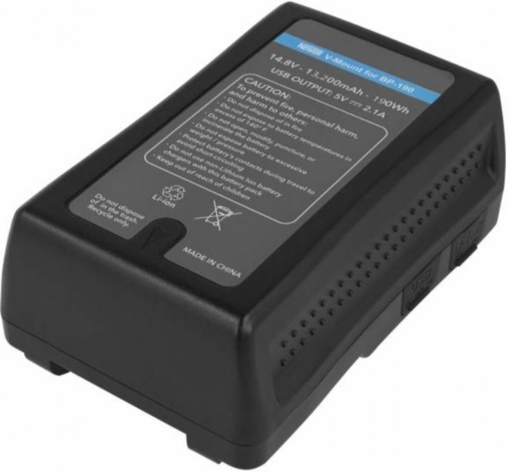 Při jednání s profesionálním filmováním, unexpected power failure is not an option. Newell BP-190 V-Mount nabízí vysoké kvality, bezpečnostní a pokročilé technologie, všechny na atraktivní cenu. V-Mount (V-Lock) baterie balení fit a širokou škálu profesionálních kamer včetně Sony, Red, Arri, Blackmagic a různé typy osvětlení. High quality Nejlepší kvalita cells jsou používány v výrobě batterií Newell. Kapacita quoted v milliamps je real and ensures a long operating time. Multiple applications The Newell BP-190 V-Mount baterie pack je additionally vybaven s USB a D-Tap sockets. Tyto způsoby, jak používat stored energy in it for many applications. 100% bezpečnostní zařízení Stavební inteligentní bezpečnostní systém, založený na elektronických IC, reguluje charging process. Tyto záruky bezpečí a ochrany pro zařízení a uživatele. Tento aktuální charge level je indikován na LED display. Advanced technologie The Newell replacement je budova s lithium-ion technology. Je allows repeated charging and discharging, as well as recharging v roce 2009 bez rizika riziku. Mnoho let zkušeností The Newell brand má been na trhu pro mnoho let a má dlouhý list spokojených zákazníků, řadu profesionálů a amatérů. Specification model: BP-190 V-Mount technologie: Li-ion capacity: 13200 mAh, 190 Wh voltage: 14.8 volts USB výstup: 5 V, 2.1 A