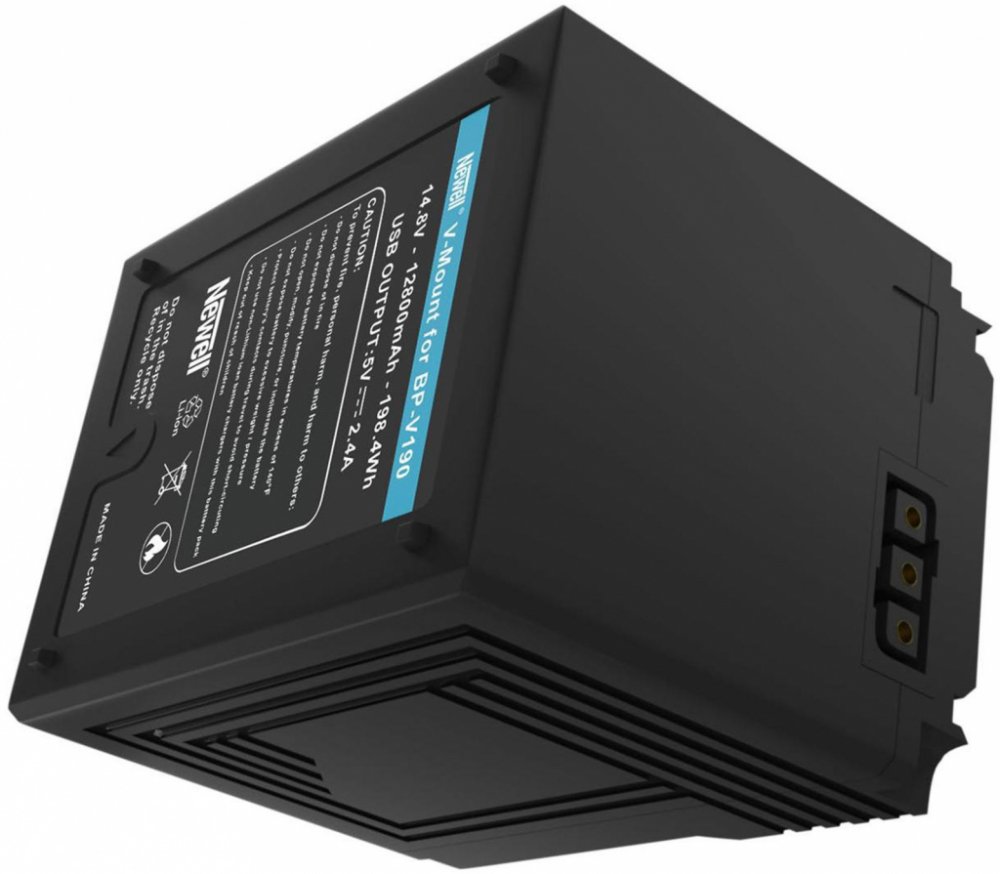 When dealing with professional filming, you can't have an unexpected power outage. The Newell BP-V190 SLIM provides high quality, safety and advanced technology, all at an attractive price. The V-Mount (V-Lock) battery pack fits many professional cameras, including Sony, Red, Arri, Blackmagic and various types of lighting. High quality The best quality cells from a leading manufacturer are used in the production of Newell batteries. The capacity quoted in milliamps is real and ensures a long operating time. Multiple applications The Newell BP-V190 SLIM battery pack is additionally equipped with USB, P-tap and D-Tap sockets. This allows you to use the stored energy in it for many applications. 100% safety The built-in intelligent safety system, based on the IC electronics, regulates the charging process. This guarantees safety and protection for the device and the user. The current charge level is indicated by an LED display. Advanced technology The Newell replacement is built with lithium-ion technology. It allows repeated charging and discharging, as well as recharging at any time without the risk of the so-called memory effect. Many years of experience The Newell brand has been in business for many years and has a long list of satisfied customers, both among professionals and amateur photographers. Specifications model: BP-V190 SLIM technology: Li-ion 18650 LG capacity: 12800 mAh, 198.4 Wh voltage: 14.8 V max load: 13 A (16 A protection) P-Tap / D-Tap: 10 V ; 8.3 A, 16.8 V ; 4 A - max 100W USB output: 5 V ; 2.4 A, 9 V ; 2 A dimensions: 75 x 84 x 104 mm weight: approx. 940 g Compatibility Cameras and other devices equipped with a V-Mount socket