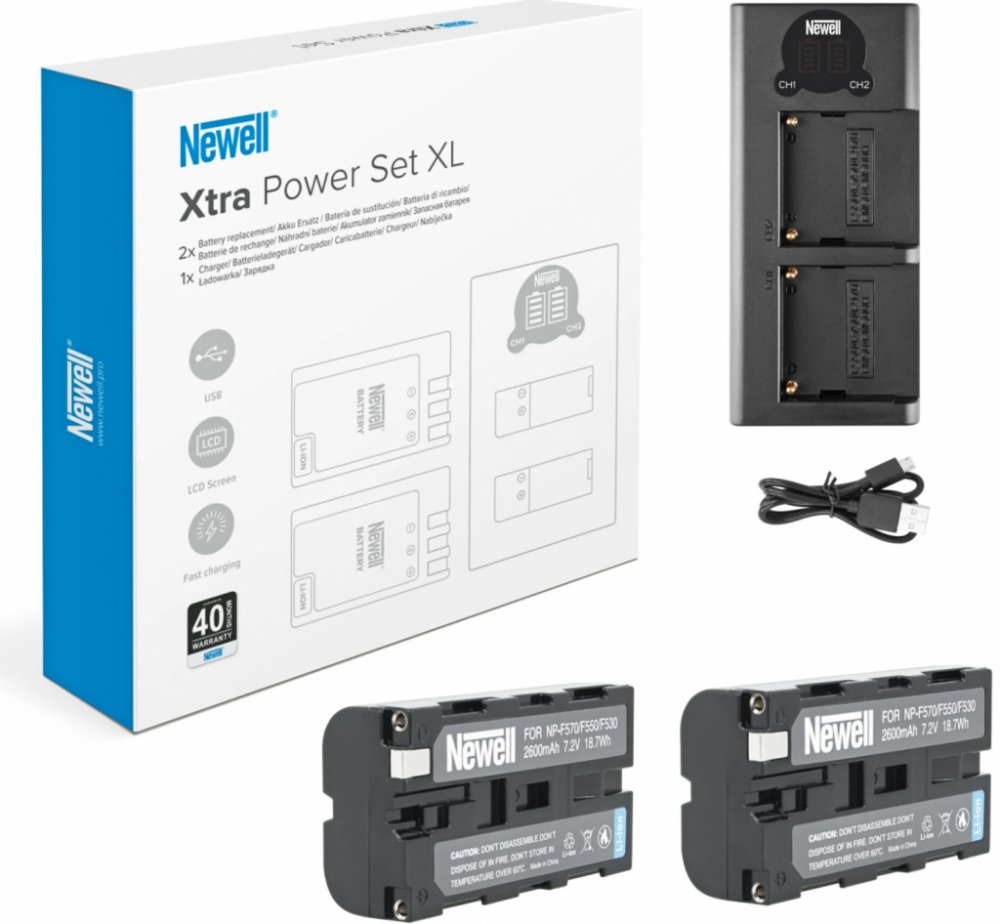 Nabíječka fotoaparátu Newell DL-USB-C Dvoukanálová nabíječka a dvě baterie NP-F570 pro Sony