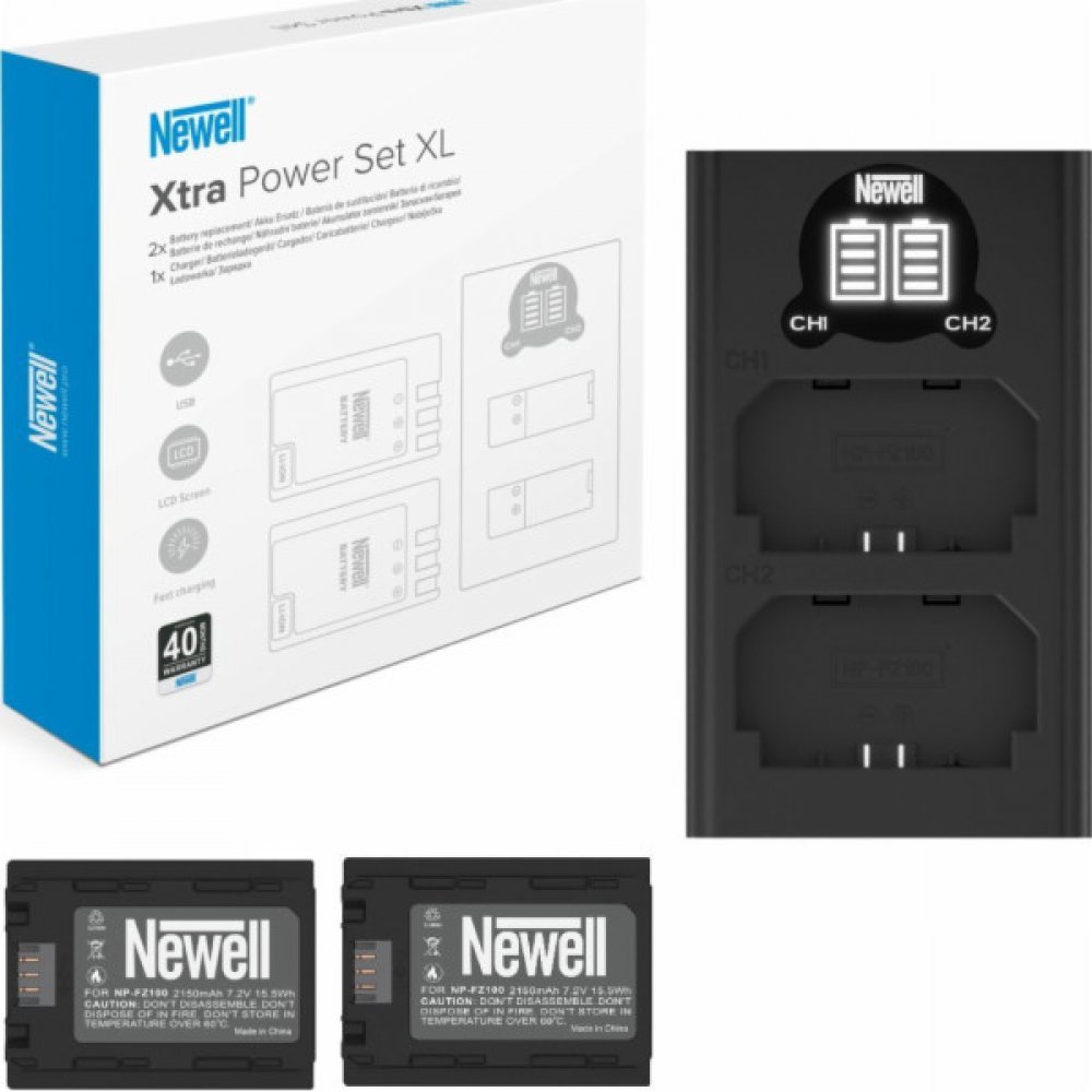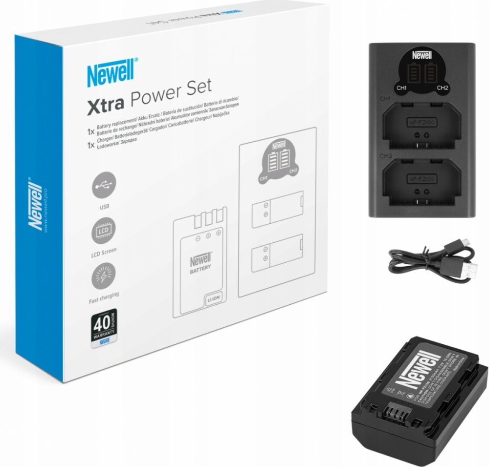 Sada, která obsahuje dvoukanálovou nabíječku Newell DL-USB-C a akumulátor NP-FZ100, představuje vše, co potřebujete k přípravě na dlouhé hodiny práce s fotoaparátem. Všude tam, kde je omezen přístup k elektrické síti, můžete využít port USB, který vám umožní nabíjet články pomocí notebooku, powerbanky nebo nabíječky pro chytré telefony. V balení najdete náhradní baterii NP-FZ100, která využívá nejkvalitnější články a inteligentní systém regulující proces nabíjení. Nemusíte ztrácet čas hledáním baterií kompatibilních s nabíječkami. To, co potřebujete, najdete v jednom balení. A to vše za výjimečnou cenu a 40měsíční záruku od výrobce!