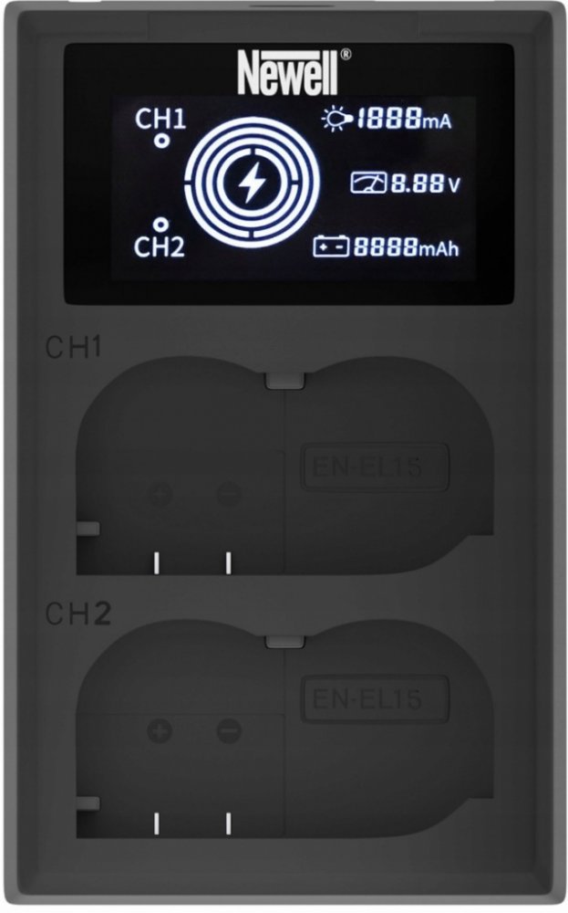 Nabíječka NEWELL pro Nikon EN-EL15 baterie s napájecím kabelem a adaptérem do auta. Nabíječka nové generace pro rychlé a bezpečné nabíjení baterií z 230 V a 100 V zásuvek(standard USA). Balení dodatečně obsahuje 12 V napájecí kabel(do auta). Takto universální nabíječka vám umožní dobíjet skoro na každým místě na zemi. Nabíječka obsahuje mikroprocesor, který kontroluje proces nabíjení. Mikroprocesor chrání baterie před přehřátím a přetížením. Díky tomu nabíjení probíhá rychlé a bezpečně. Po zapnutí nabíječky se zkontroluje stav baterie, a následně se baterie začnou nabíjet. Po nabití, přístroj se přepne do pohotovostního režimu a zastaví nabíjení. V důsledku toho není třeba se obávat přetížení baterií ponechaných v zařízení.