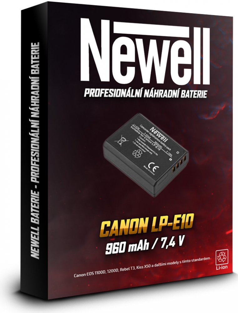 100% bezpečný pro váš přístroj. Zabudovaný chip. Baterie Newell jsou vyráběny z japonských článků, o reálném objemu 960 mAh, podle lithium-iontové technologie. Lze je nabíjet bez předchozího vybití. Nemají negativní paměťový efekt. Jsou kompatibilní, jak s originální nabíječkou, tak i s její alternativou. Při nákupu baterie Newell, máte jistotu, že váš fotoaparát není vystaven poškození. Jako jeden z mála se zárukou na 24 měsíců!