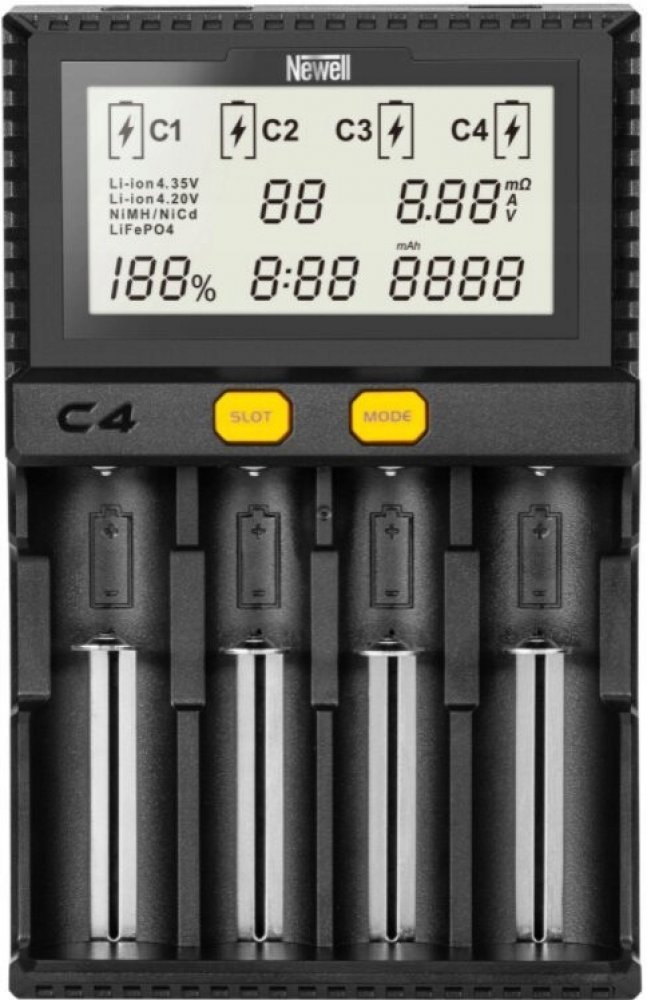 Newell Smart C4 automaticky rozpozná typ akumulátoru Li-ion 4,2 V a NiMH/NiCd 1,48 V. Akumulátory LiFEP04 a Li-ion 4,35 V nejsou detekovány automaticky. Pro nabíjení těchto baterií je třeba jejich typ zadat ručně.