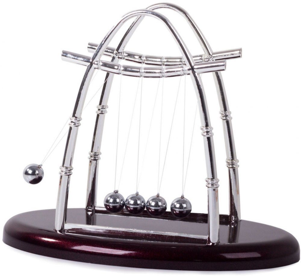 Jste přepracovaní a často pracujete dlouho do noci? Pořiďte si na stůl uklidňující Newtonovu houpačku! Jedná se o kuličky z nerezové oceli zavěšené na tenkých drátcích. Od prvotního kmitnutí se díky principu předávání kinetické energie kuličky od sebe navzájem odrážejí a kmitat vydrží opravdu velmi dlouho. Stylový dárek do každé pracovny.